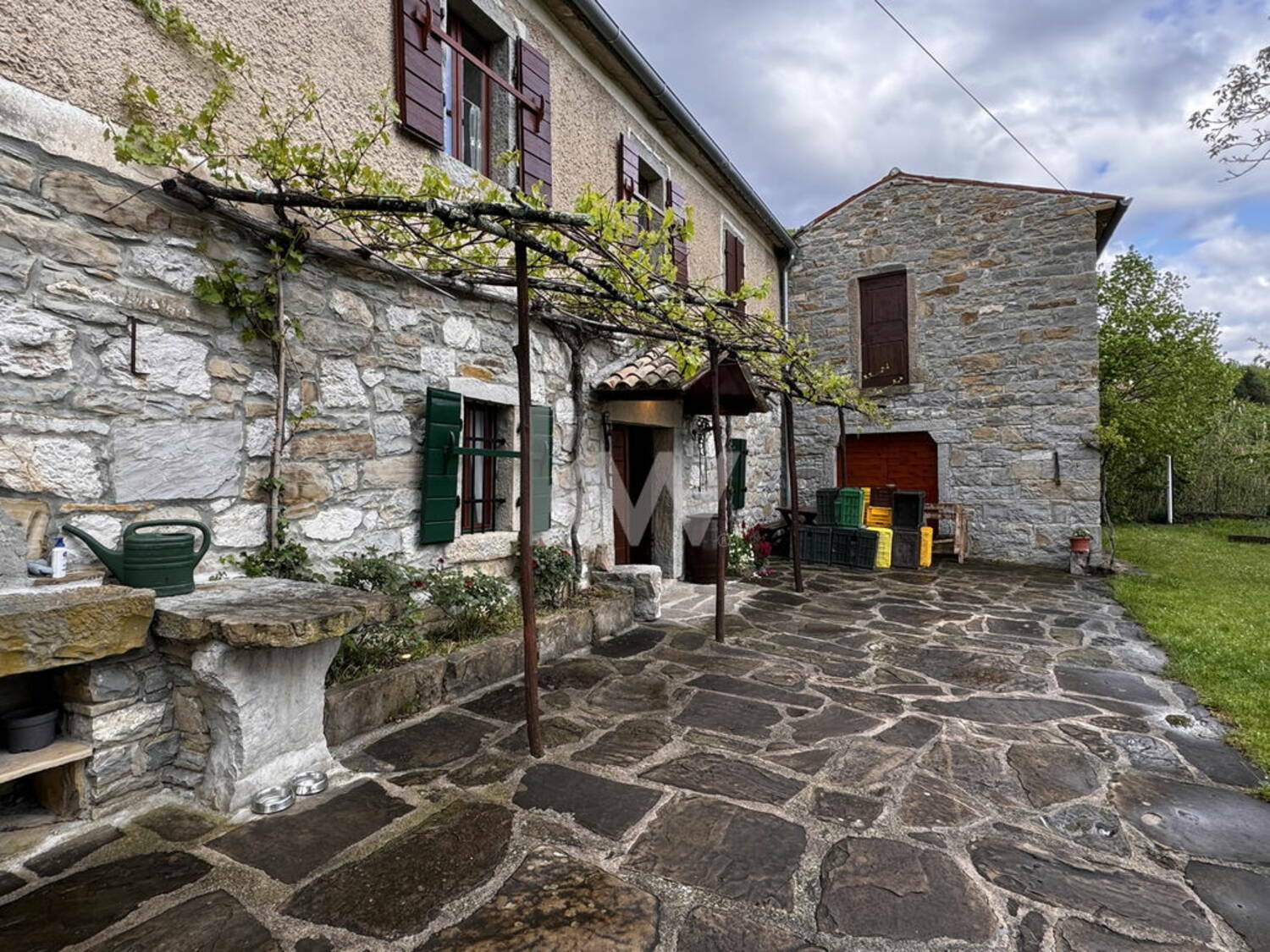 Pred hišo, na stavbni parceli velikosti 1.532 m2, se nahaja obsežno dvorišče ter vrt in sadovnjak. Na vrtu so drevesa, kot so murva, lipa in oreh, ki imajo v regiji slovenske Istre še posebej pomembno vlogo, saj so del njene naravne dediščine in prispevajo k idiličnemu vzdušju. Na tem delu je možnost postavitve bazena ali gradnje dodatnega objekta.