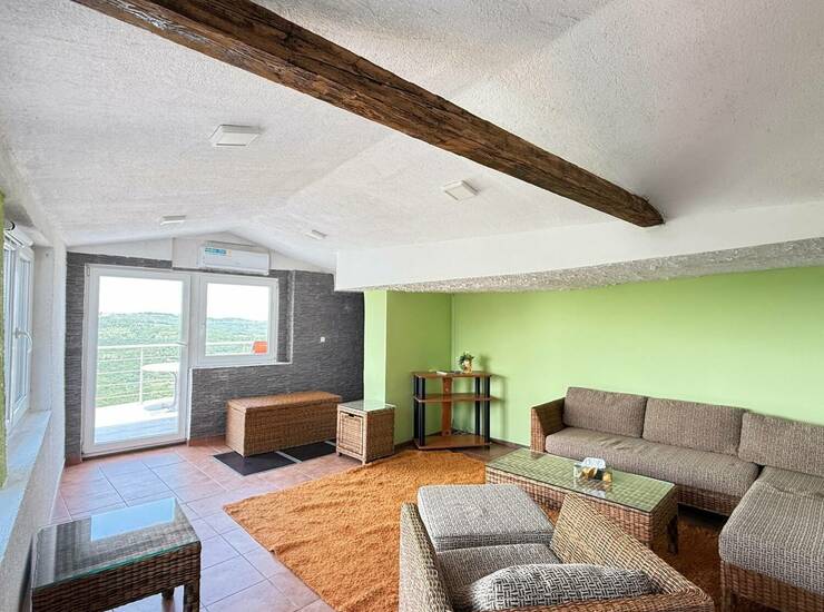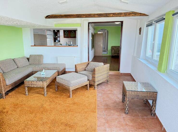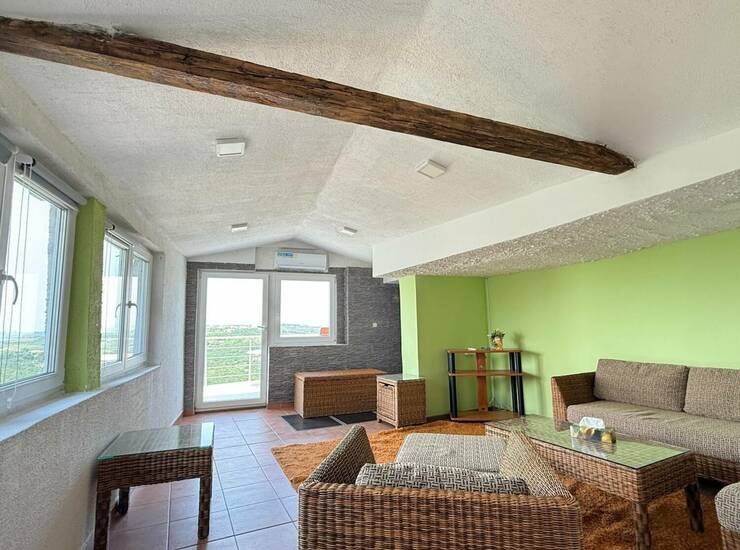 V hiši sta dve stanovanji.. Spodaj je 4 sobno stanovanje, ter v nadstropju enosobno. Obe stanovanji imata ločena vhoda. Nahaja se le 7 min vožnje iz Kopra. Pred objektom je možno parkirati dve vozili v garaži.