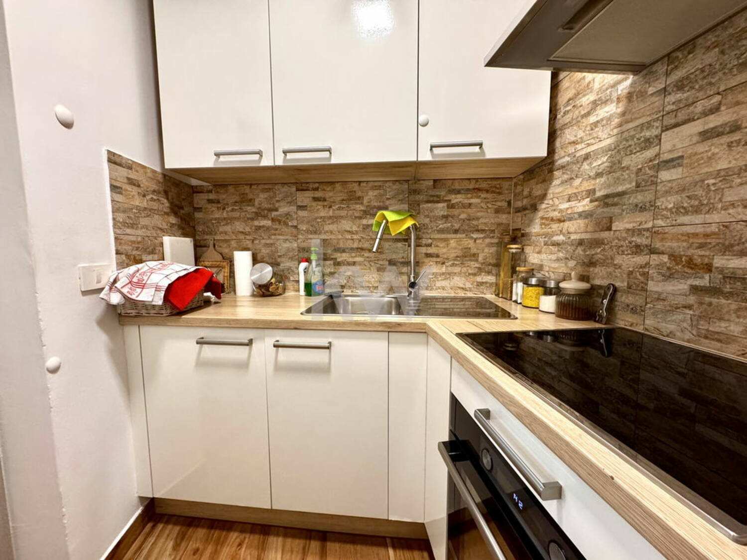 - kuhinja z vsemi aparati: pomivalni stroj, električna pečica, električna kuhalna plošča, velik hladilnik