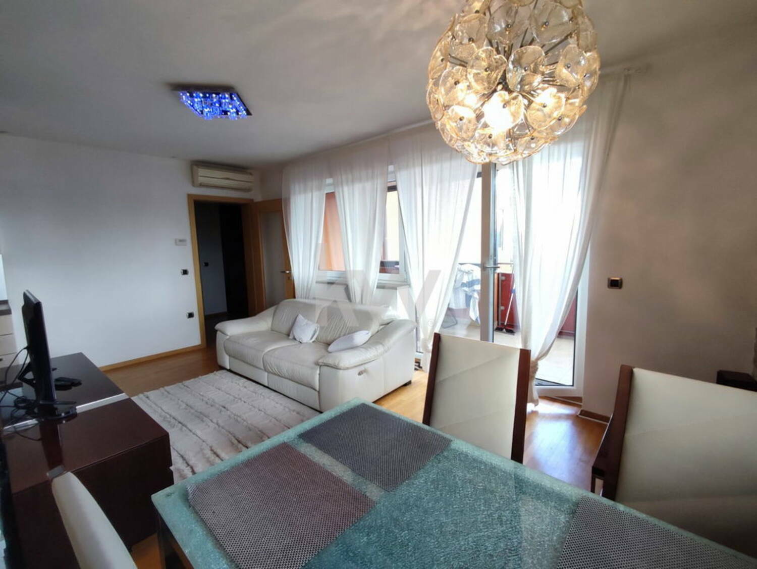dnevni prostor z izhodom na balkon in teraso