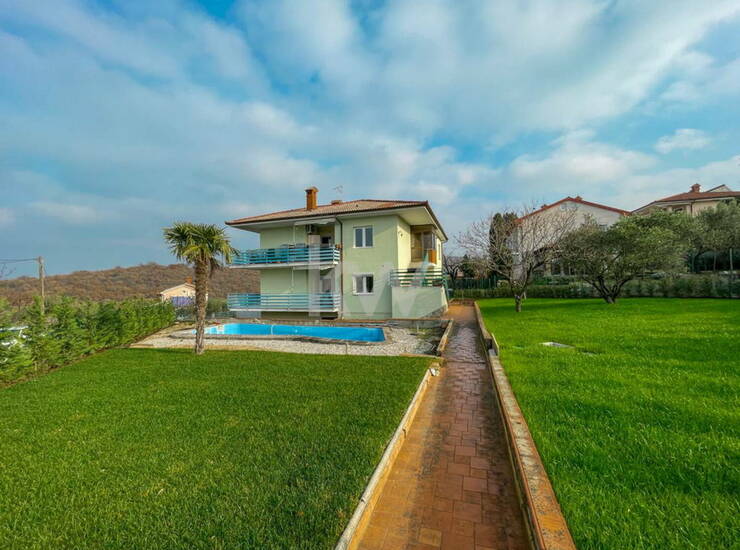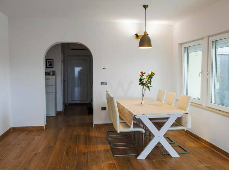 Posredujemo pri prodaji zelo lepega in prostornega 5-sobnega stanovanja z garažo, velikim dvoriščem in lastnim bazenom. Nepremičnina se nahaja v 1. nadstropju samostojne večstanovanjske hiše, v naselju Zgornje Škofije pri Kopru. Stanovanje je letnik 1985 in je bilo kompletno prenovljeno leta 2025 s kakovostno opremo in materiali ( fasada je obnovljena 2006). Stanovanje je velikosti 144 m2 (neto tlorisne površine) od tega je 101,60 uporabne površine, klet je velika 4,4 m2 in balkon 38 m2. Pred hišo se nahaja lastniška nadkrita garaža velikosti 76 m2, ob hiši pa je veliko lastniško dvorišče velikosti 568 m2, kjer je umeščen tudi bazen z možnostjo ogrevanja. Stanovanju pripada lastniški števec za vodo in elektriko ter speljana je tudi optika. Gretje je urejeno s toplotno črpalko in talnim gretjem. Celotno dvorišče je ograjeno in pred hišo se nahaja vhod do hiše oz. skupno dvorišče velikosti 108 m2, katero je namenjeno vsem solastnikom hiše. V hiši so umeščena tri stanovanja, katera so tudi etažno razdeljena z ločenimi vhodi. Dostop je urejen neposredno iz glavne ceste. Stanovanje se prodaja opremljeno in možnost prevzema je v pričetku naslednjega leta.