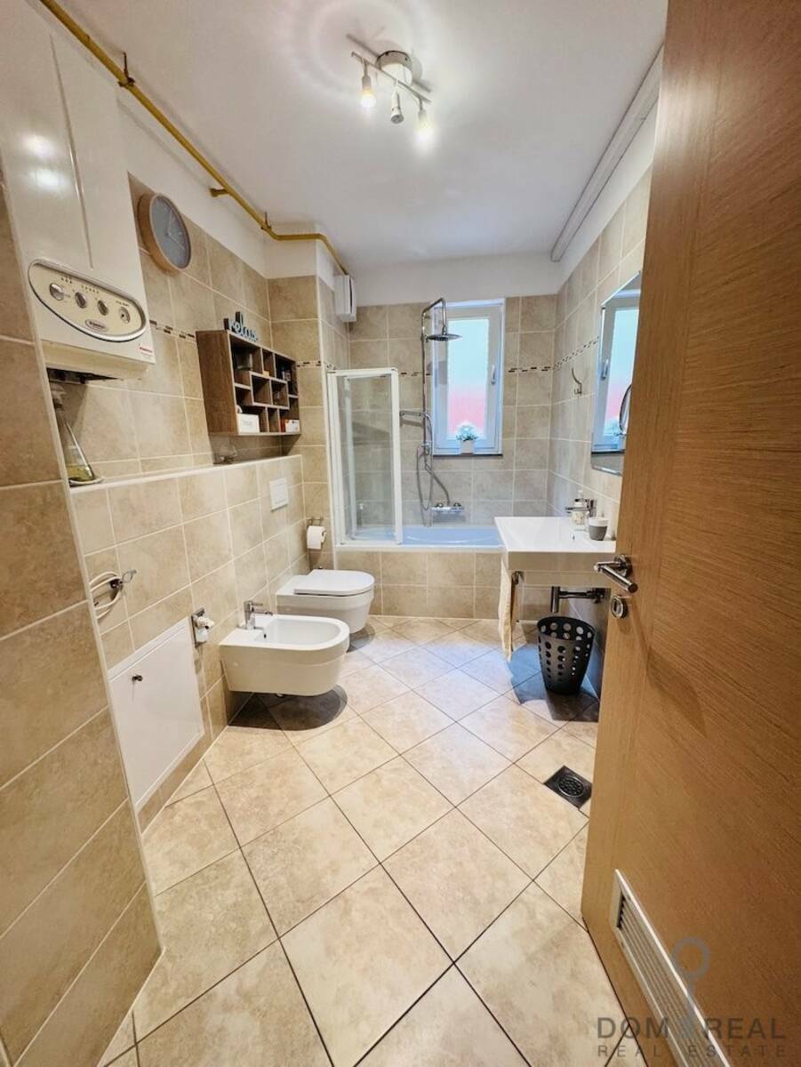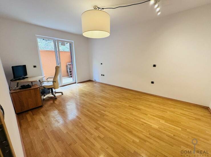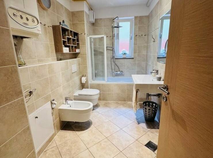 Notranjost obsega dve spalnici, od katerih je ena manjša, druga pa zelo prostorna in svetla. Kopalnica je opremljena s kadjo in tušem ter nudi vse potrebno za udobno vsakodnevno uporabo. Stanovanje je delno opremljeno, klimatizirano ter ogrevano na plin, kamin in klimo, kar omogoča prilagodljivo in energetsko učinkovito ogrevanje.