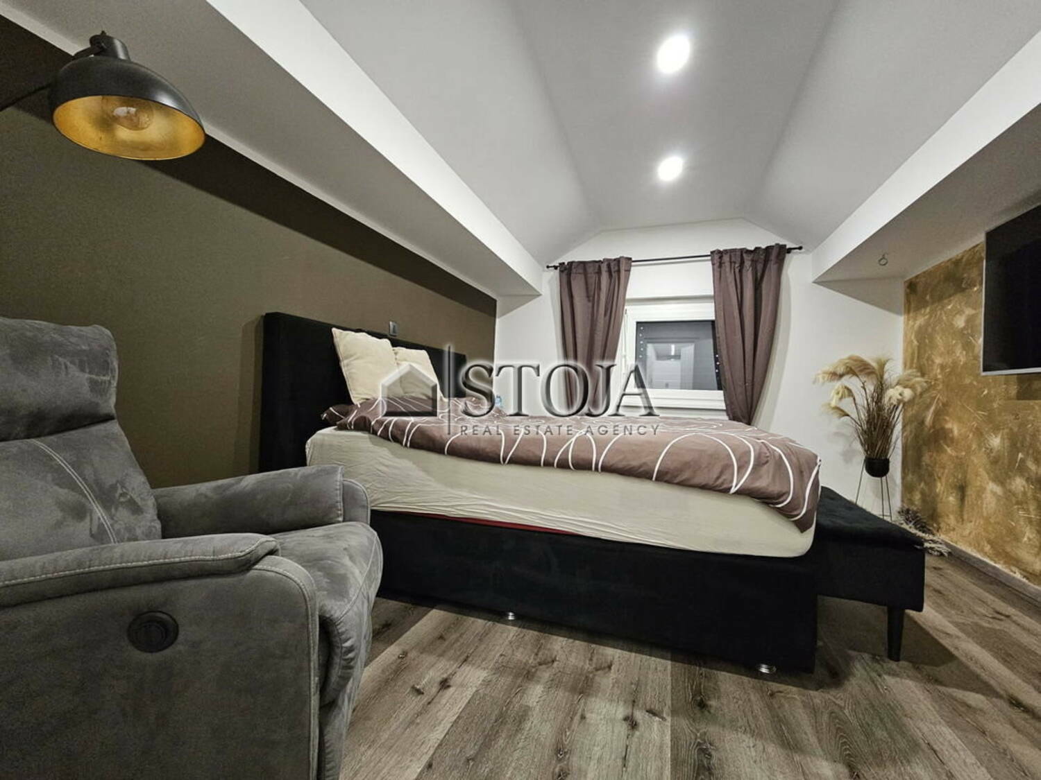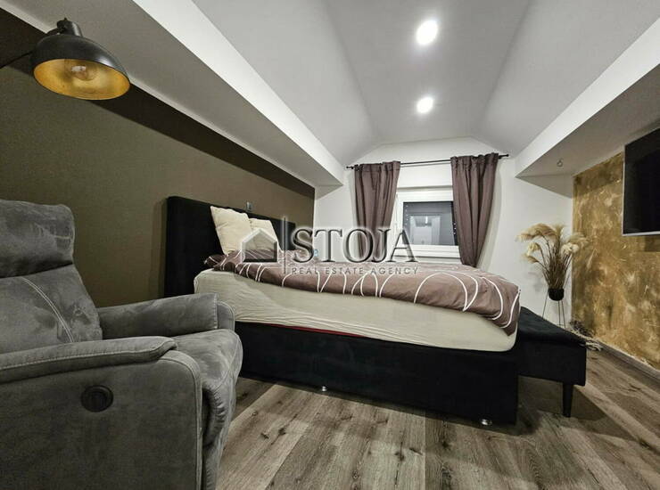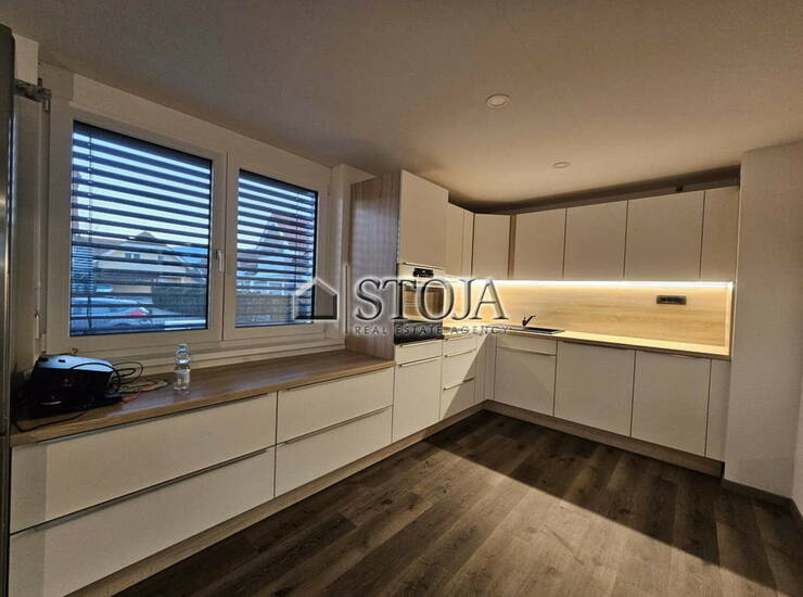 Prenovljena hiša v okolici Kranja, proti Škofji loki z geberiti 12,5m x 8,5m.Hiša obsega polklet, kjer se nahajata dva poslovna prostora - kozmetični salon in brivnica ter tehnični prostori - kurilnica z utility in wcjem.V pritličju se nahaja 3 sobno klimatizirano in opremljeno prostorno stanovanje (cca 100m2) inv nadstropju je duplex klimatizirano in opremljeno prostorno stanovanje (cca 100 m2 v nadstropju), ki se nadaljuje v zgornji mansardi del, ker so 3 sobe in kopalnica (mansarda).Vsak nadstropje ima ločene elektro števce. Nedokončano v hiši je še stopnišče ter okolica.Lastnik ureja dokumentacijo - legalizacijo. Predpriprava za optiko, video nadzor ter alarm, sončno elektrarno ter polnilno postajo.Prevzem možen aprila 2024. Pogoj prodajalca za sklenitev posla: Kupec plača davek na promet nepremičnin v višini 2 % prodajne cene.