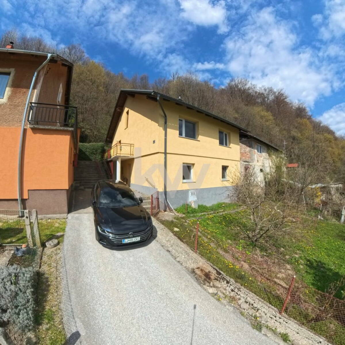 Stanovanju pripada sorazmerni del zelenih površin pred zgradbo, ki je med lastniki razdeljen.