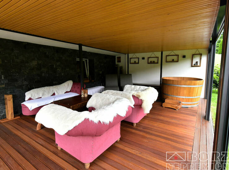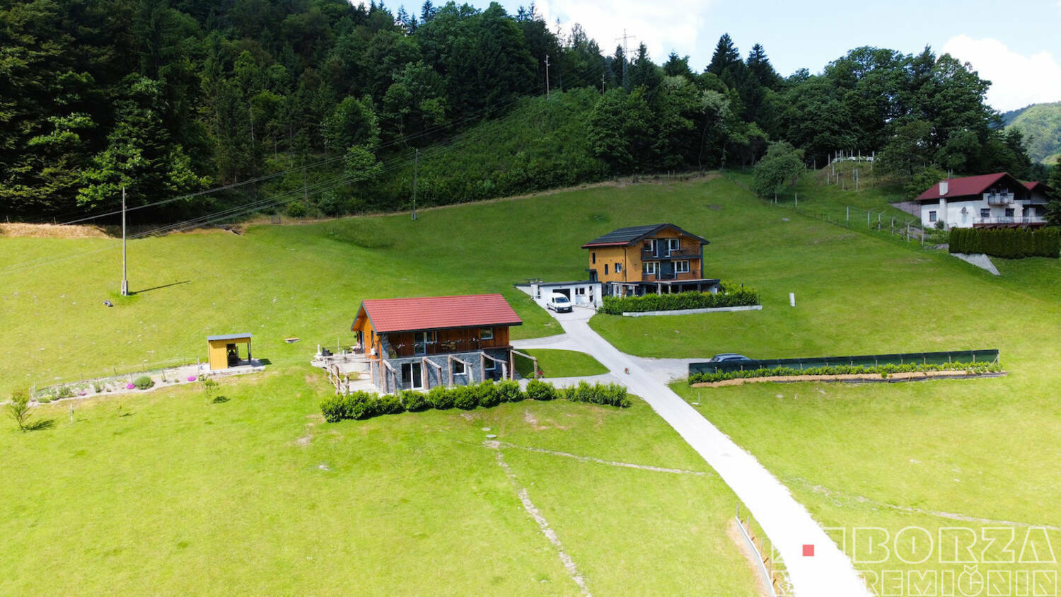 Posest zajema dve hiši s skupno petimi apartmaji (možnost dodatnega), ki stoji na zemljišču velikem 11.000 m2