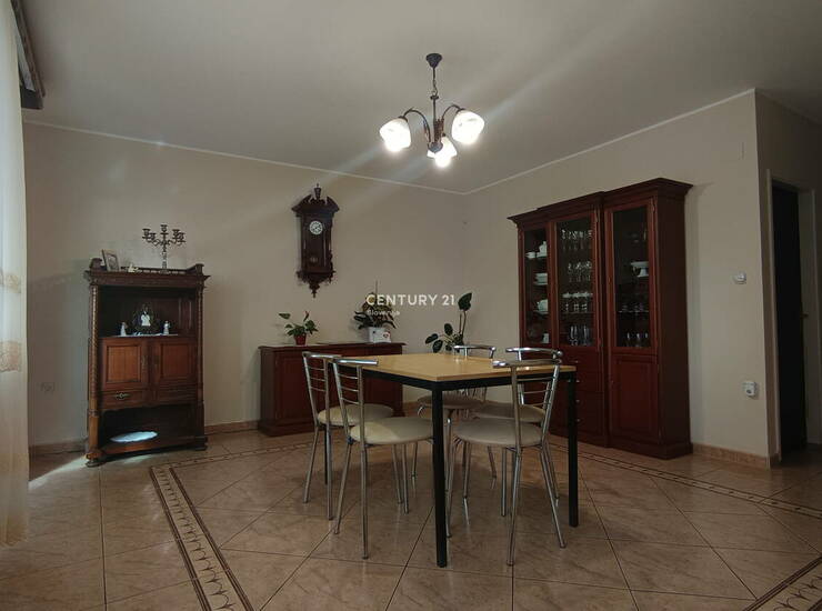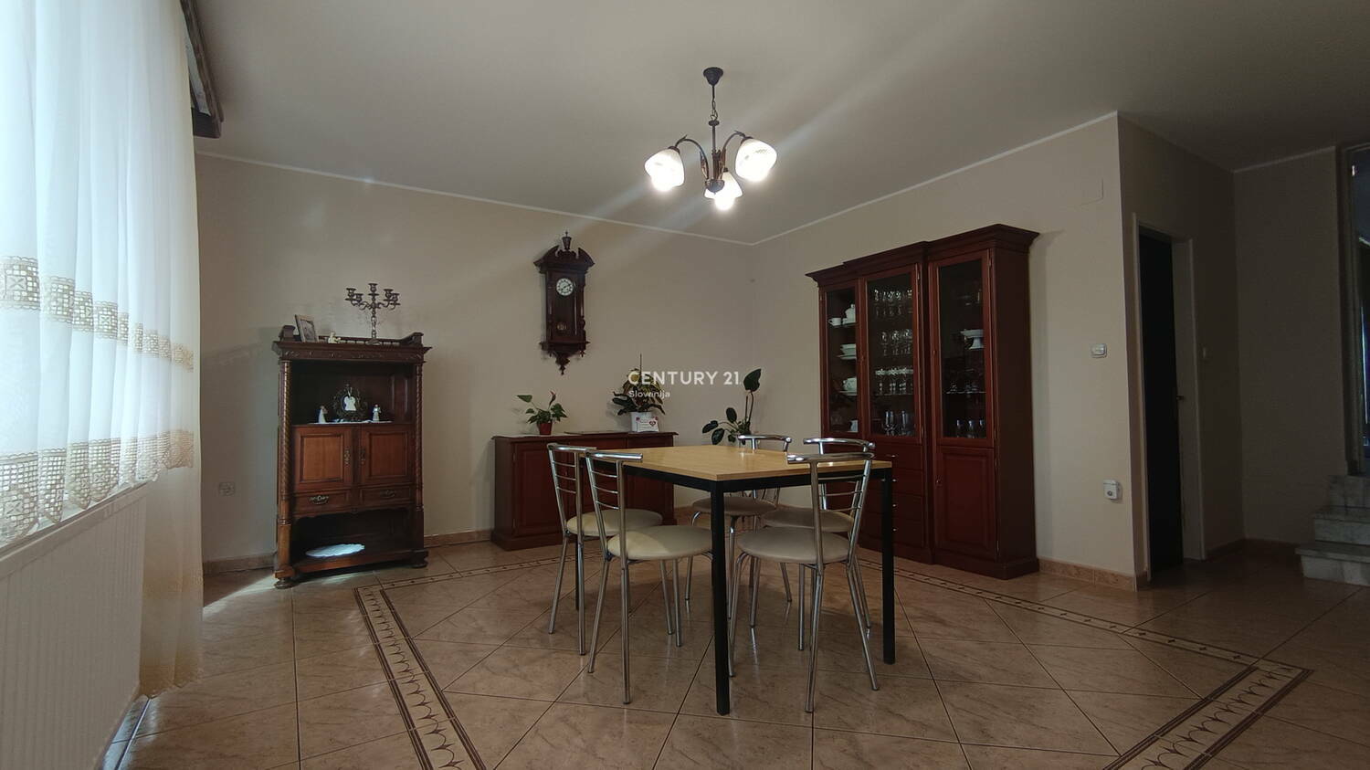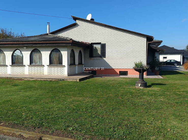 Lendava, Trimlini: prodamo večjo družinsko hišo s pripadajočim zemljiščem in velikim parkiriščem z garažo / delavnico, ki se nahaja v kraju Trimlini v Lendavi. Na parceli velikosti dobrih 1923 m2 stoji prostoren stanovanjski objekt. Stavba je bruto tlorisne površine 259 m2. V pritličju se poleg 4-sobnega stanovanja nahaja tudi velika delavnica/garaža, katera nudi tudi možnosti razvoja dejavnosti iz področja obrti in turizma. Dodatno je ločen poslovni prostor, ki lahko služi kot pisarna s sanitarijami. V kleti se nahaja 3-sobno stanovanje brez kopalnice in sanitarij. Video ogled: LASTNOSTI NEPREMIČNINE Letnik: 1991 Parcela: 1923 m2 Neto tlorisna površina hiše po GURS podatkih: 259 m2 Etaže: K+P Razporeditev: Klet; 3-sobno stanovanje:, stopnišče, hodnik, dnevna soba s kuhinjo in jedilnico, spalnica, soba, kurilnica. Pritličje: predprostor, soba za goste s kopalnico in WC v povezavi z izhodom v garažo, hodnik, manjša kuhinja v povezavi z izhodom v garažo, jedilnica z izhodom na teraso, kuhinja, dnevna soba s povezavo do poslovnega prostora, shramba, kopalnica z WC, spalnica z garderobno sobo, dodatna spalnica. Garaža: 123 m2 Talne obloge: parket, keramika. Priključki: elektrika, voda, telefon, kanalizacija, optika. Ogrevanje: peč na olje (peč je WEISHAUPTOVA l. 2006), centralno-radiatorsko in tudi lončena peč. Oprema: po dogovoru. Dodatno: prizidek k hiši, ki lahko služi kot poslovni prostor in pa terasa Zemljiškoknjižno stanje: urejeno Opomba: ob hiši so v treh jaških nameščene potopne črpalke, ki avtomatsko črpajo naraščajočo podtalnico, tako da so kletni prostori primerni za bivanje, prostori so suhi. Leta 11/2006 so bila izvedena gradbeno-hidroizolacijska dela. Izolacija hiše je bila izvedena do temeljev v globini do 2,40 m. Stanovanjski del je bil kompletno renoviran l 2005, vključujoč kopalnice, kuhinjo, instalacije, talne obloge ter vso pohištvo (ki vključuje tudi vgradne om