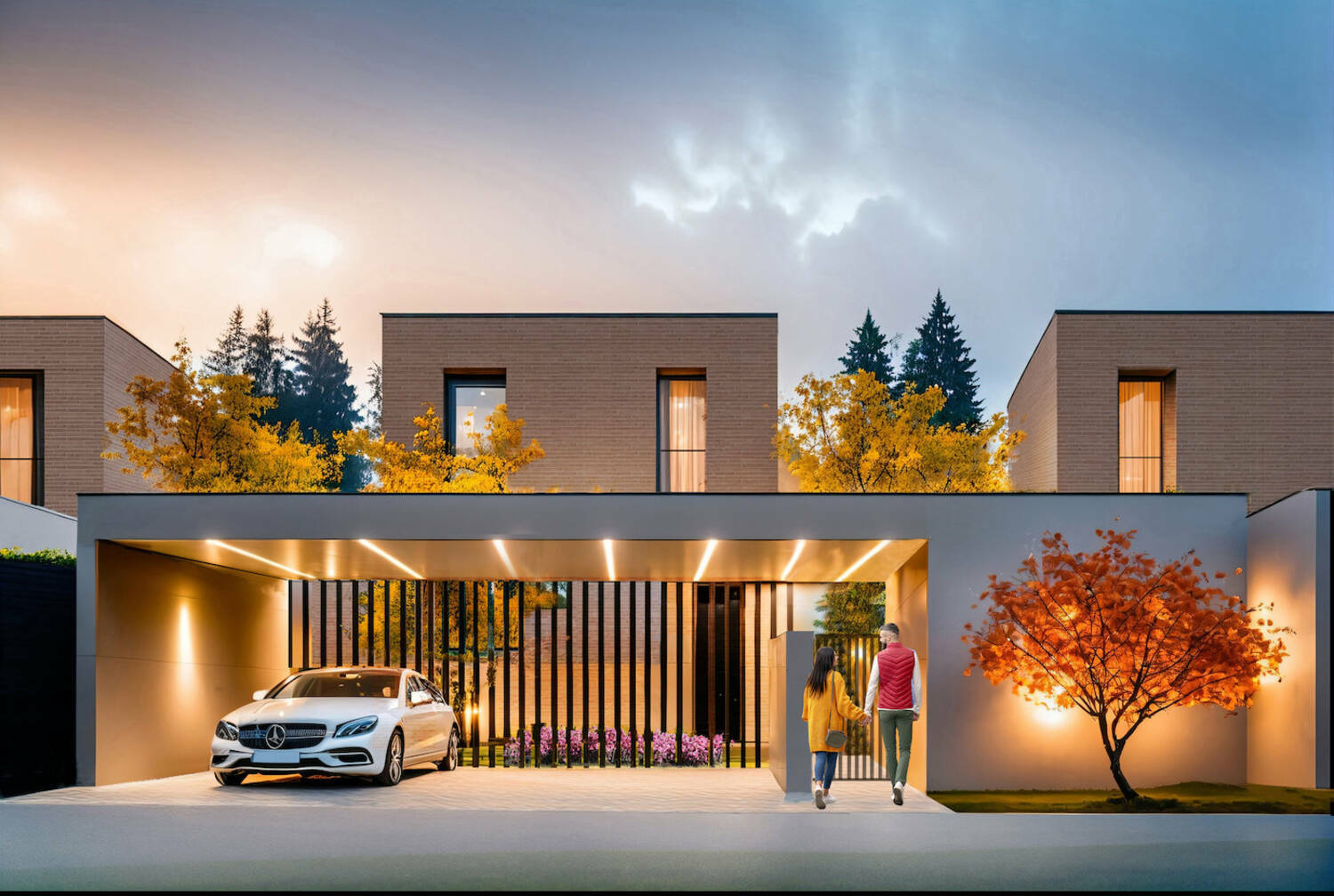 Parcela meri 365 m² in je obdana z zelenjem, kar zagotavlja prijetno zasebnost. Na voljo sta dve lastni parkirni mesti pod grajeno nadstrešnico ter lopa, zunanja ureditev pa omogoča ustvarjanje prijetnega kotička za poletna druženja z nadkrito terao in atrijem.