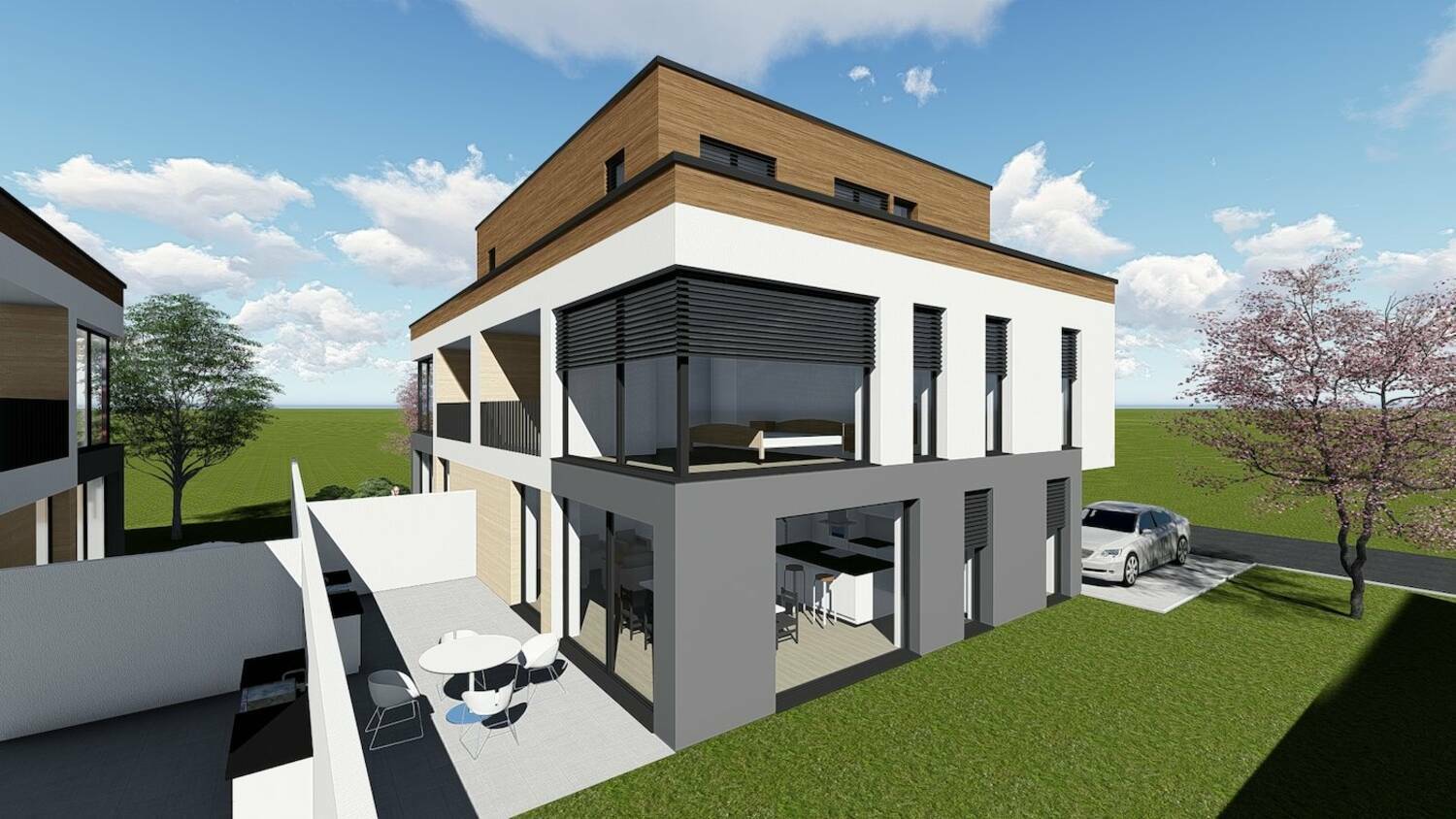 Objekt bo klasično zidan z opečnim zidakom in z AB temeljno ploščo. Streha bo ravna z minimalnim naklonom. Stanovanjska enota bo imela talno gretje in se bo ogrevala s svojo toplotno črpalko. Vgrajena bodo termopan stekla s troslojno zasteklitvijo. Prezračevanje bo izvedeno z rekuperacijo.