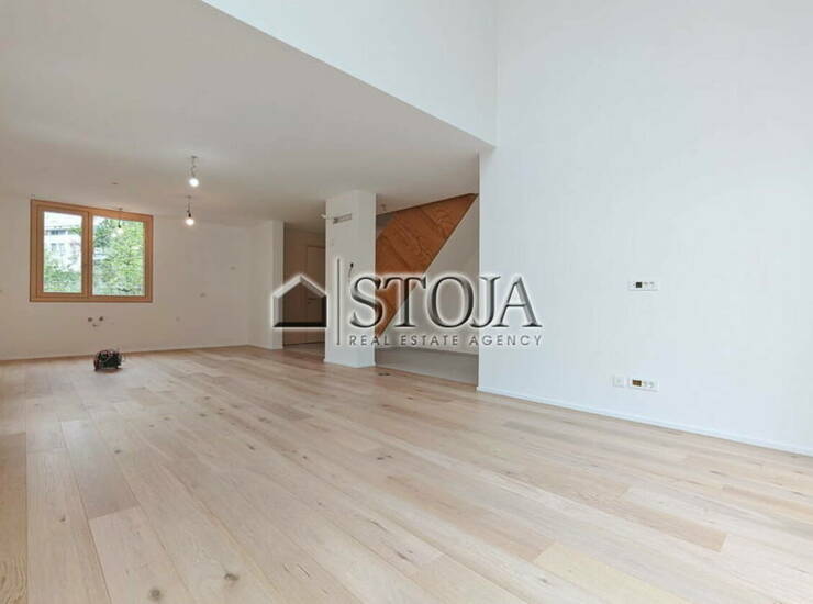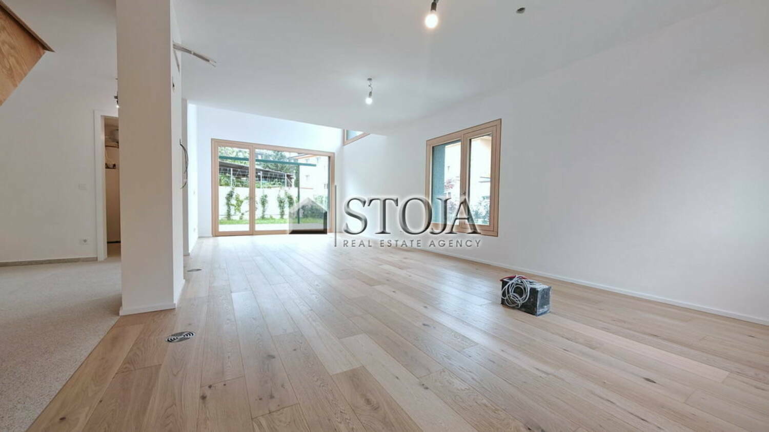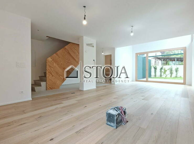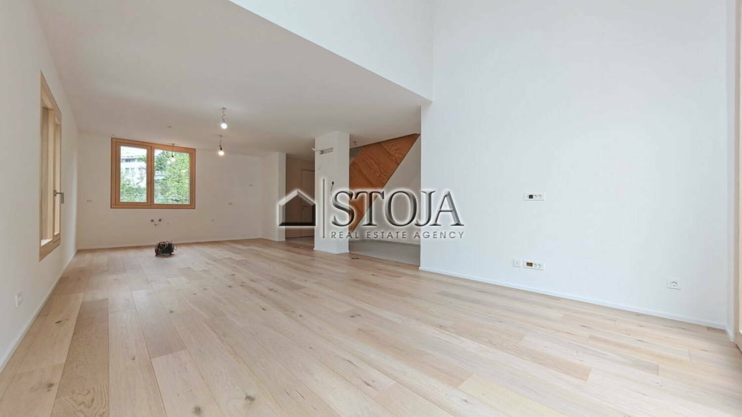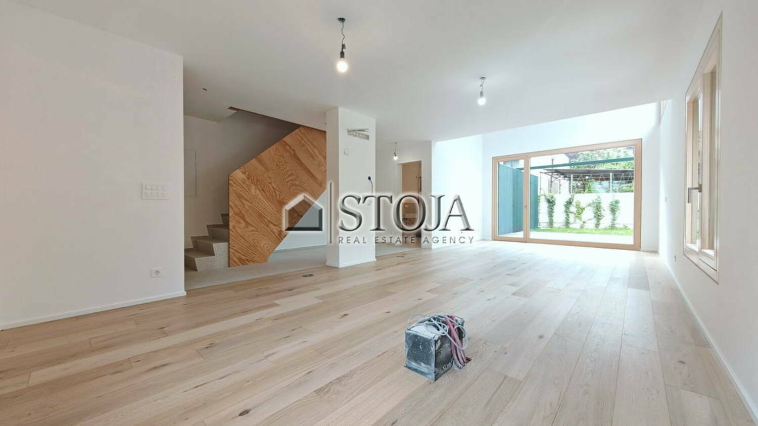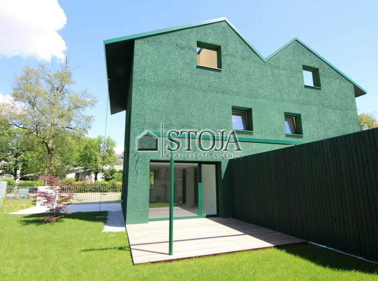 Prodamo v celoti dokončan ter nizkoenergijsko zasnovan dvojček (s strani biroja Bevk Perović arhitekti) na ekskluzivni, mirni in zeleni lokaciji le cca. 20 minut hoje do centra mesta.Prodamo v celoti dokončan ter nizkoenergijsko zasnovan dvojček (s strani biroja Bevk Perović arhitekti) na ekskluzivni, mirni in zeleni lokaciji le cca. 20 minut hoje do centra mesta. V neposredni bližini se nahaja LPP avtobusna postaja, vrtec, mednarodna šola, fakultete, trgovina, javno kopališče Kolezija, itd. Skladno z izdanim gradbenim dovoljenjem ima sicer objekt namembnost dvostanovanjskega objekta, vendar v naravi deluje kot dvojček. Razporeditev prostorov zunaj obsega dvorišče za parkiranje 4 avtomobilov, znotraj pa pritličje, kjer je lociran dnevno bivalen prostor, tehnični prostor s sanitarijami ter izhod na teraso z vrtom z možnostjo vzpostavitve letne kuhinje. V nadstropju sta locirani dve mladinski sobi z lastno kopalnico.V mansardi pa prostor za pisarniški kotiček, glavna spalnica z izhodom na teraso in lastno kopalnico. Hiša se ponaša z izredno obstojno titan cinkovo steho proizvajalca Rheinzink, ogrevano streho in žlebovi, organskim zaključnim slojem, 3-slojnimi okni (les-alu) s senčimi fugami in senčili ter vrati na prstni odtis proizvajalca Inles, talnim ogravanjem na toplotno črpalko in centralnim prezračevanjem z rekuperacijo, predpripravo za talno napo, predpripravami za skrite klimatske naprave, predinštalacijo za polnilno postajo za električna vozila, predpripravo za kamere, brušenimi betoni na dostopnih poteh, itd. Oglaševana cena velja za eno enoto dvojčka in že vsebuje 9,5% DDV. Kupec ne plača agencijske provizije, na voljo takoj, vabljeni k ogledu!