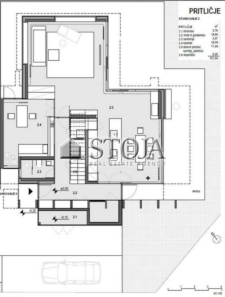 Premišljena in moderna arhitektura, na mirni a urbani lokaciji. Prostorna hiša z veliko steklenih površin.VILA v gradnji - Oaza sodobnega udobja in razkošja.Ponosno predstavljamo vam edinstveno priložnost za lastništvo popolnoma nove vile, ki je trenutno gradnji. Ta sanjska rezidenca je oblikovana s strastjo do sodobne arhitekture in ponuja izjemno udobje ter izjemne poglede na urejeno okolje in hrib Golovec. Povabite naravo v svoj dom s prefinjeno zasnovo, ki združuje naravno svetlobo in odprtost. Glavne lastnosti hiše:a) Velike steklene stene: Hiša je obdana z impresivnimi steklenimi stenami, ki omogočajo obilo naravne svetlobe, obenem pa ustvarjajo harmonično povezavo med notranjostjo in zunanjostjo.b) Odprt in zračen tloris: Uživajte v občutku prostornosti in svobode z odprtim tlorisom, ki vam omogoča prilagajanje prostorov glede na vaše potrebe. Sodobna zasnova poskrbi za popoln pretok energije in udobja.c) Visoki stropovi: Povišani stropovi so ključni element, ki dodaja elegance in prostornosti prostorom. Ta arhitekturni detajl dviguje izkušnjo bivanja na višjo raven.d) Kamin: V hladnejših mesecih lahko svoj dom napolnite s toplino in pridihom romantike, saj vam bo kamin nudil prijetno vzdušje ter dodal pridih elegance.e) Privatna terasa: Uživajte v trenutkih sprostitve in zasebnosti na veliki delno pokriti terasi, ki je idealna za druženje s prijatelji ali preprosto za uživanje v čudovitem razgledu na okolico. f) Pogled na urejeno okolje in hrib Golovec: Vsakodnevno se zbudite s pogledom na čudovito urejeno okolico, ki jo dopolnjuje osupljiv hrib Golovec. Ta naravna kulisa bo zagotovila mir in pomirjujočo atmosfero.Dvostanovanjska villa se lahko združi v eno zelo veliko in prestižno villo. Celotna površina je v pritličju in prvem nadstropj, ter je obdana z več velikih teras z pogledom na vrt in hribe v ozadju. Hiša se prodaja zgrajena do 4. gradbene faze, po specifikacija del za dokončanje