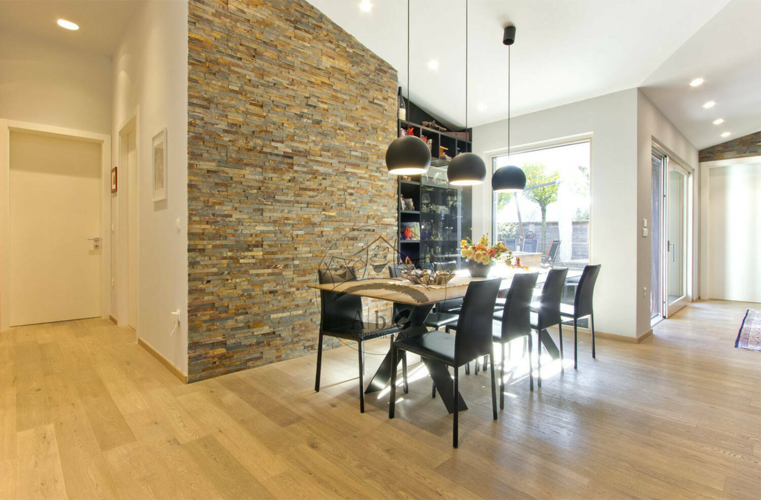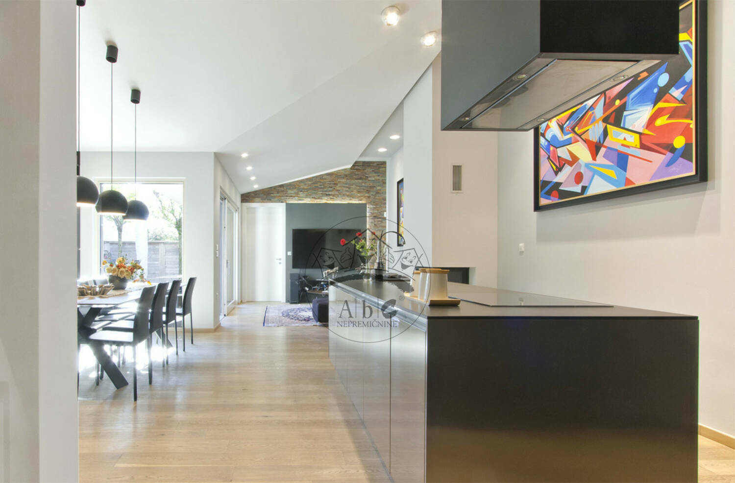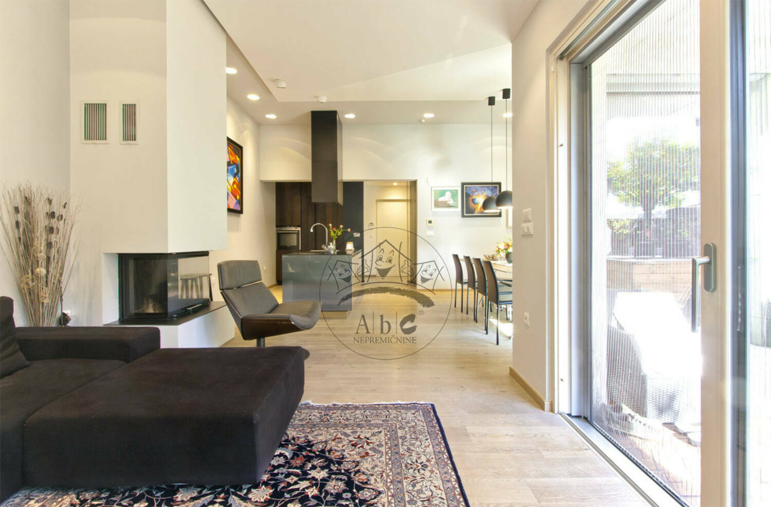 Velika panoramska okna: Občutite povezavo z naravo in uživajte v obilici sonca in svetlobe, ki preplavlja prostore.