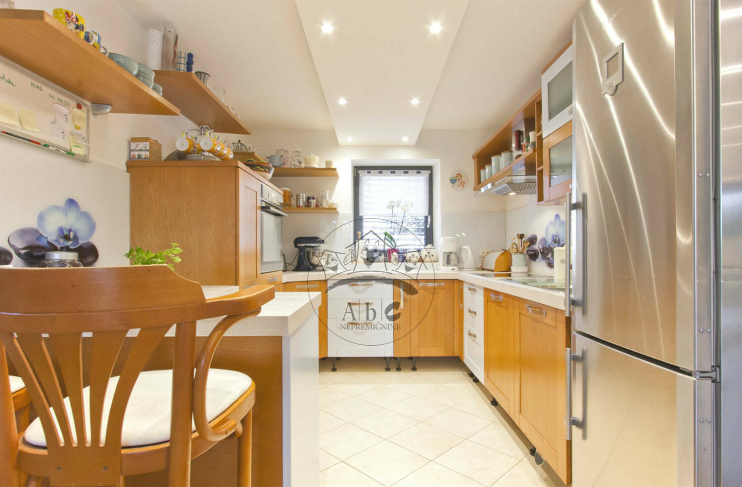Srce hiše: Sodobna kuhinja, integrirana z jedilnico in dnevno sobo z neposrednim, izhodom na teraso in vrt,