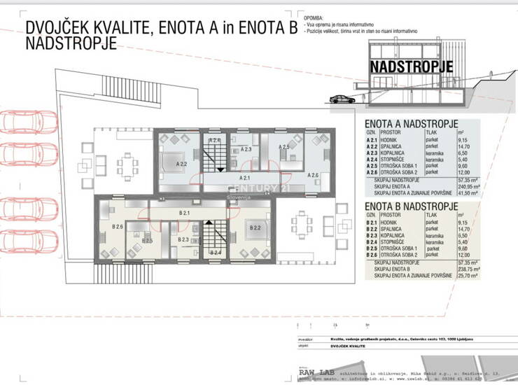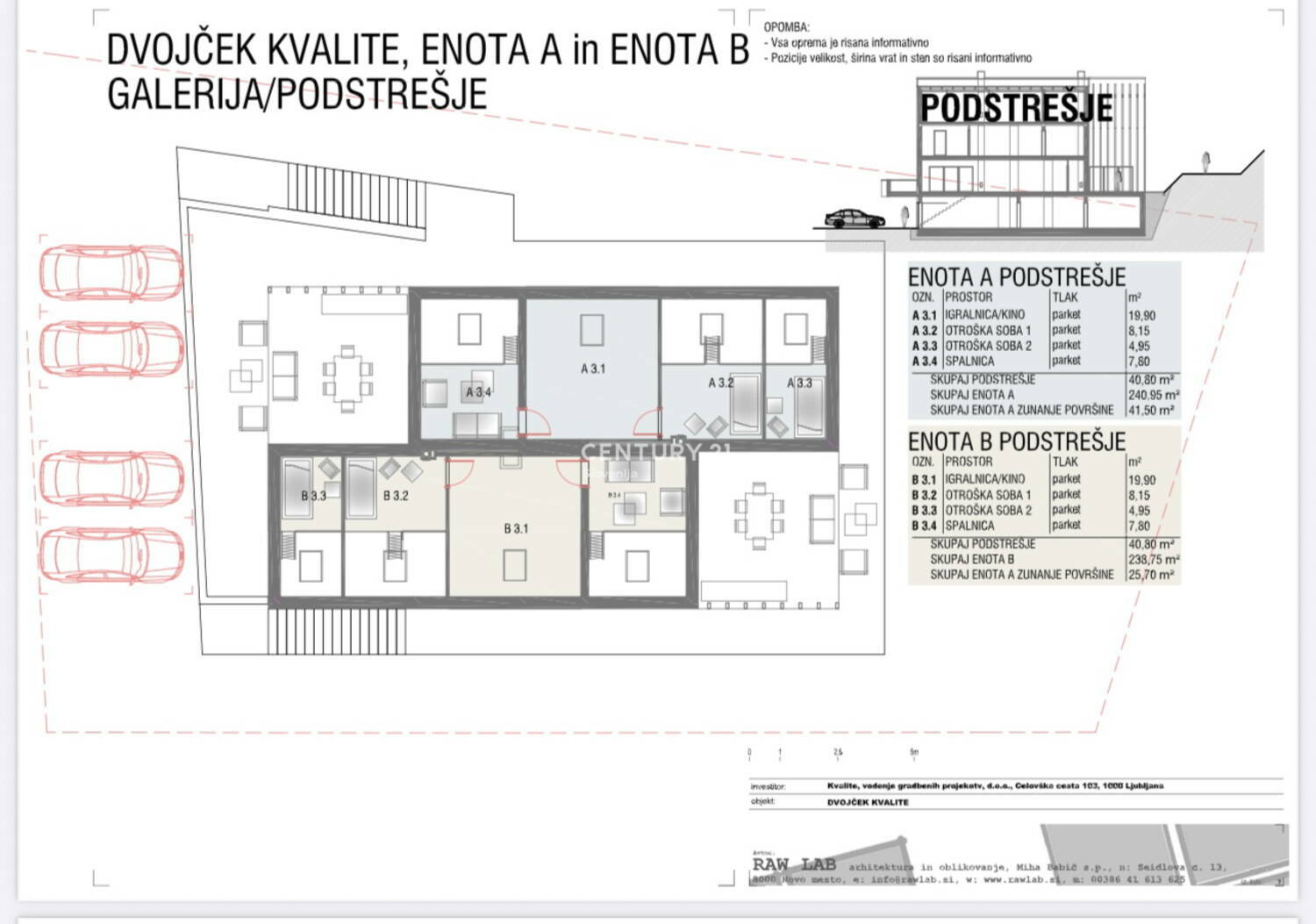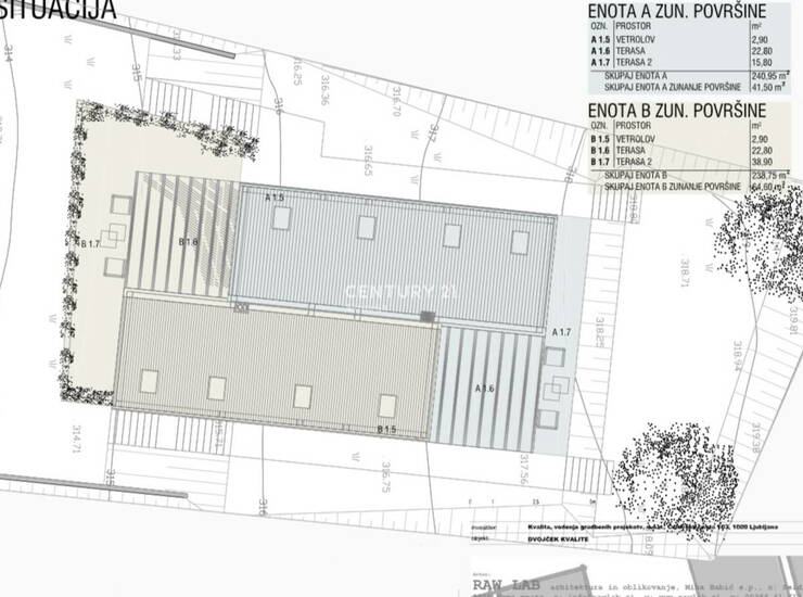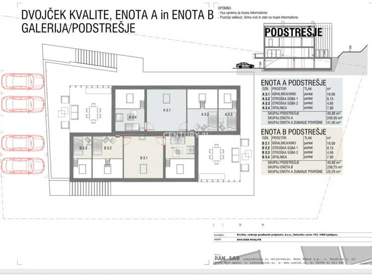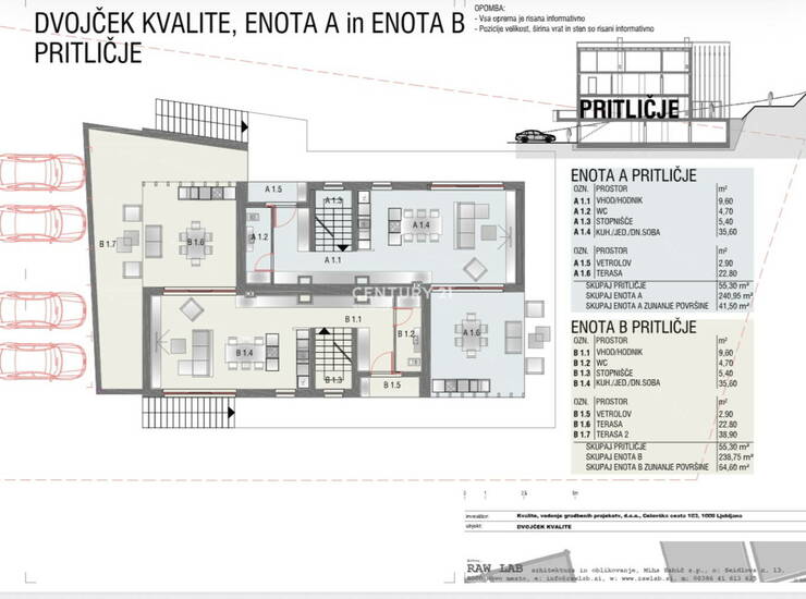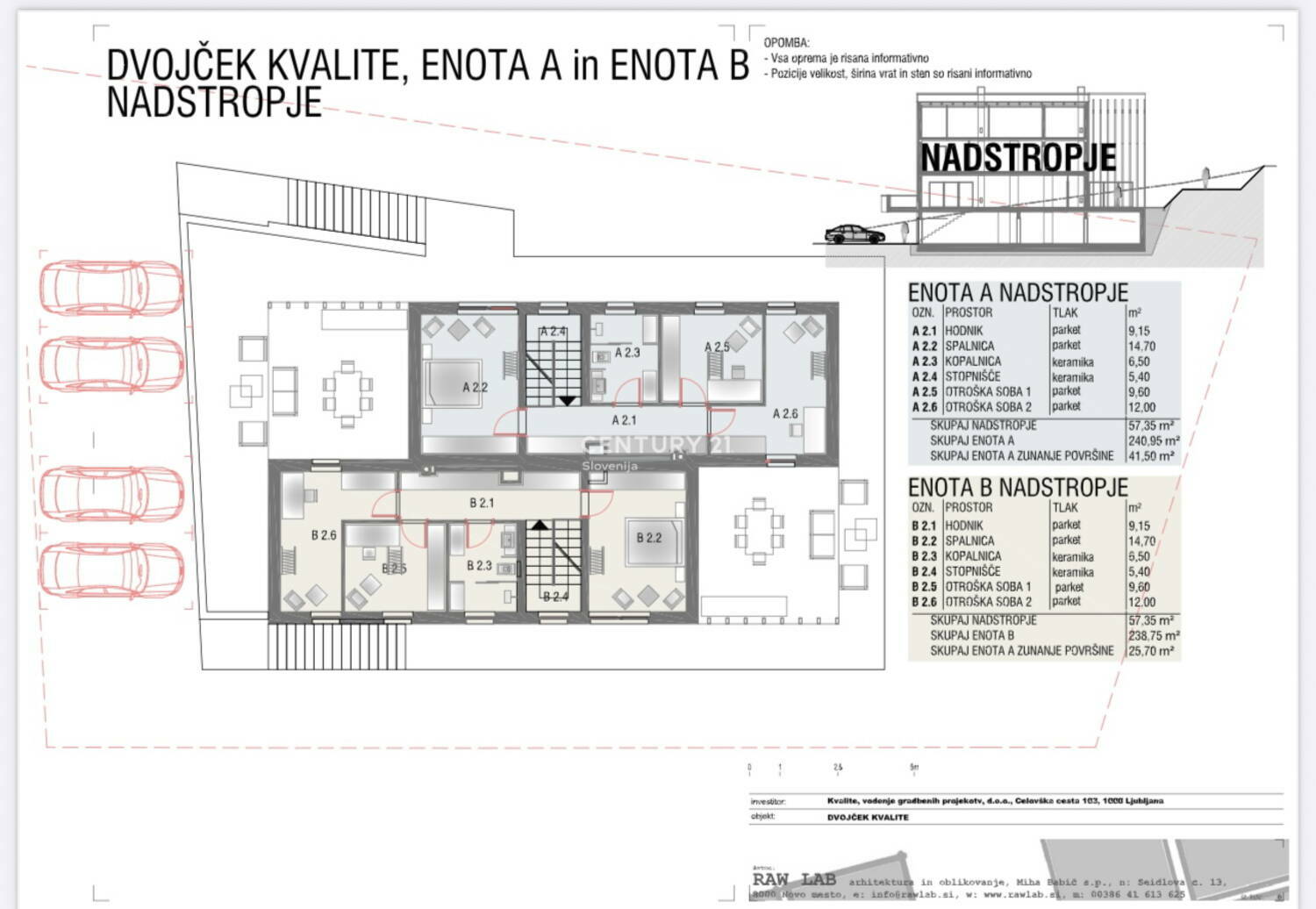 Na lepi, mirni in sončni lokaciji v občini Brezovica posredujemo pri prodaji dvostanovanjskega objekta, ki se prodaja kot celoten objekt (obe enoti skupaj). Objekt se nahaja na zemljišču v izmeri 738 m2 . Objekt se prodaja v obstoječem stanju. Neposredna bližina narave, rekreativnih poti in vse osnovne infrastrukture. Brezovica ponuja odlično povezavo z Ljubljano. Idealna priložnost za naložbo ali bivanje dveh družin – na voljo sta dve enakovredni stanovanjski enoti, ki skupaj tvorita sodoben, energetsko učinkovit dvojček. OSNOVNE ZNAČILNOSTI OBJEKTA: Dvostanovanjska stavba (enoti A in B), etažnosti K+P+1+M Vsaka enota ima lasten vhod, atrij, teraso, kletno shrambo in 2 lastniški parkirni mesti Bruto tlorisna 515,1 m2 GRADBENE IN TEHNIČNE ZNAČILNOSTI: Konstrukcija: betonsko-opečna Fasada: kontaktna fasada, predvidena debelina 20 cm (izolacija: kamena volna) Streha: simetrična dvokapnica, naklon 35°, kritina: temno siva strešna opeka Ogrevanje: nizkotemperaturna toplotna črpalka (zrak-voda) za vsako enoto Talno ogrevanje + lokalna rekuperacija po celotni enoti Za vso dodatna vprašanja ali dokumentacijo smo vam na voljo. Lepo vabljeni na ogled!