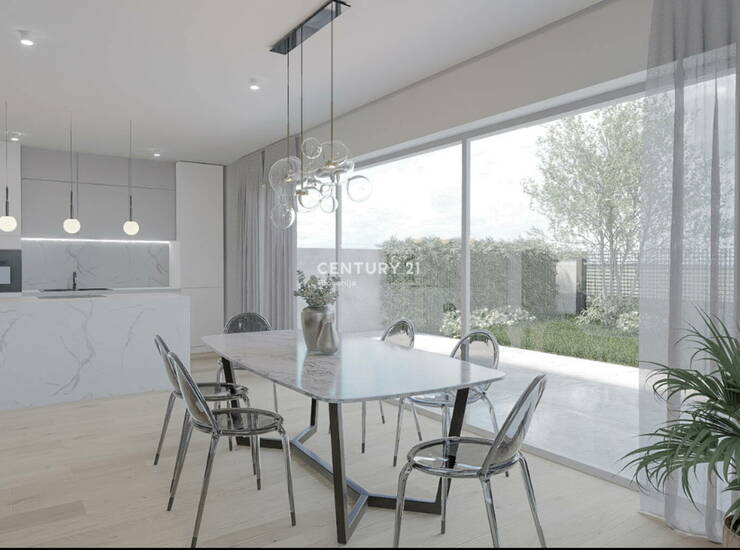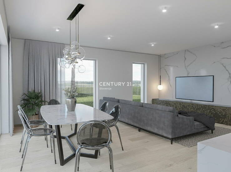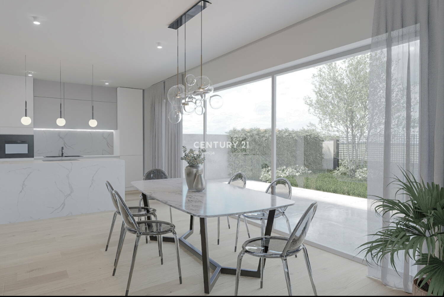 Vrhunska novogradnja v Domžalah – vrstna hiša v novem naselju ob Arkadiji Predstavljamo vam izjemno priložnost za nakup sodobne vrstne hiše v priljubljenem naselju Vir pri Domžalah, kjer imate na dosegu roke vse potrebno za udobno vsakdanje življenje. V nastajajočem naselju sodobnih hiš z ravnimi strehami se prepletata funkcionalnost in stik z naravo. Hiše iz sklop C se nahajajo na robu naselja, kar pomeni več odprtosti, več zasebnosti in manj prometa. HIŠA: C2 Kaj ponujamo? Bruto površina: 161,03 m2 / Neto bivalna površina: 152,95 m2 Dve etaži: pritličje + nadstropje Atrij, dve terasi in lastno dvorišče Dve parkirni mesti vključeni v ceno Izvedba do IV. podaljšane gradbene faze (možnost 5 faze ali popolne dokončane gradnje) Tlorisna zasnova: Pritličje: vhodni prostor, utility, WC za goste, kabinet, odprt dnevno-bivalni prostor s kuhinjo, shramba Nadstropje: hodnik, dve otroški sobi, glavna spalnica, dve kopalnici, dva balkona Tehnične lastnosti: Kakovostna tradicionalna gradnja (opeka, armirani beton) Energetsko učinkovita 3-slojna PVC okna z ALU masko Električne žaluzije vključene Fasada izolirana s 20 cm toplotne zaščite Ravna streha v skladu z najnovejšimi standardi Višina etaž: 2,6 m Priprava za toplotno črpalko, prezračevanje in klimatske naprave Asfaltiran dostop in urejena cestna infrastruktura znotraj naselja Cena: 455.000 € (Vključen 9,5 % DDV in izvedba do 4. GF) Zasnova naselja: Naselje je zasnovano kot več manjših slepih ulic s po petimi enotami, kar ustvarja intimno, varno in mirno bivalno okolje. Funkcionalna arhitektura omogoča veliko naravne svetlobe in prijetno povezanost z zunanjim prostorom preko atrijev, balkonov in vrtov. Ne odlašajte – ta priložnost je časovno omejena. Kontaktirajte nas za več informacij ali termin ogleda.