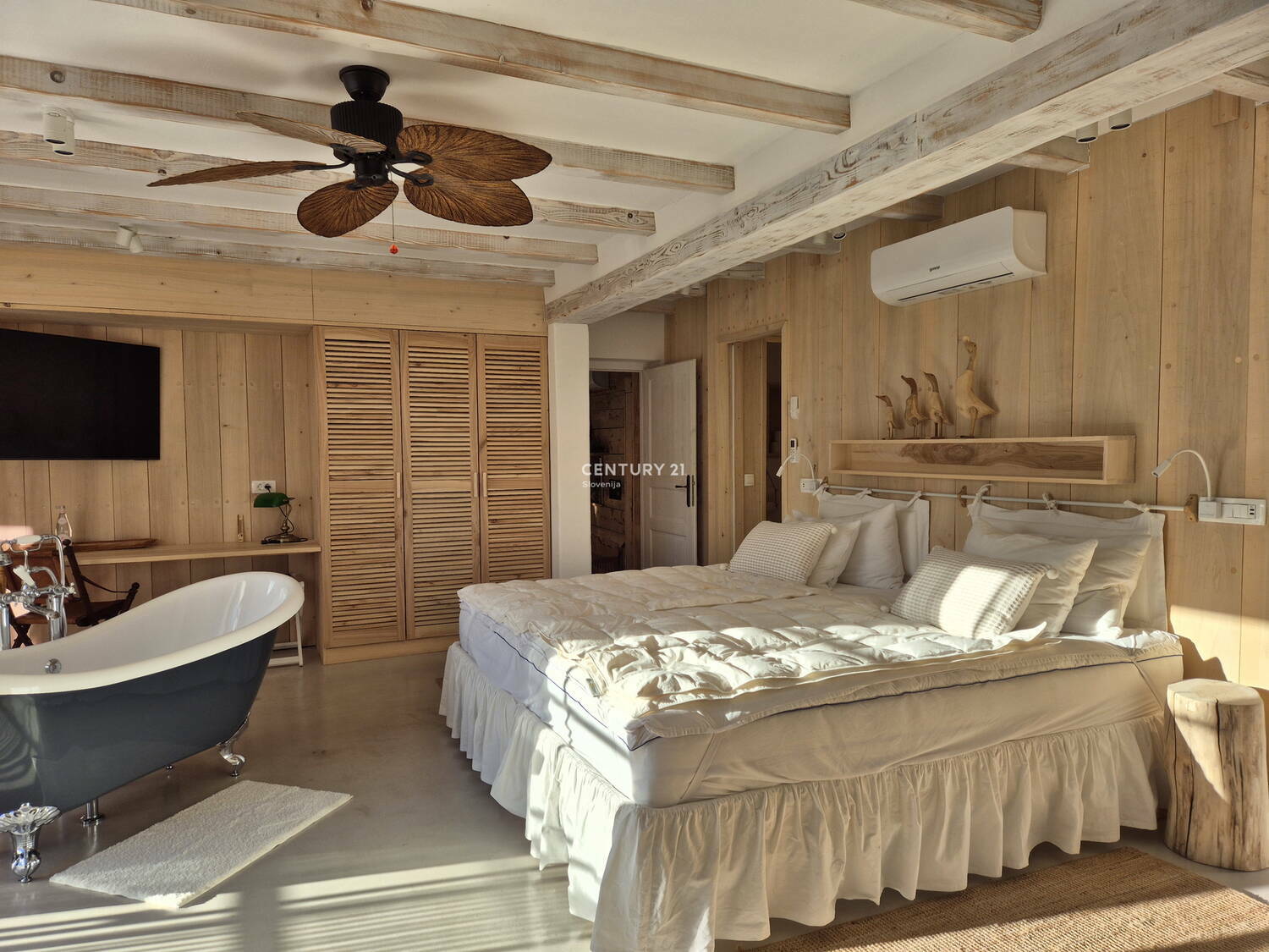 V prodaji je prostorna vila s skupno površino 232 m2, ki se nahaja v idiličnem okolju v bližini Ivančne Gorice. Iz Ljubljane je oddaljena 25 minut vožnje. Vila se ponaša z izjemno parcelo neposredno ob reki Krki v velikosti 1100 m2, ki nudi izjemne poglede v naravo. Arhitekturna zasnova vile je sodobna in premišljeno načrtovana, opremljena z unikatno izdelano opremo iz lesa, seveda po meri in z okusom ter pridihom domačnosti. Nepremičnina je orientirana proti zahodu, kar zagotavlja obilico naravne svetlobe in prijetno osončenost skozi ves dan. Med luksuznimi elementi izstopajo bazen, savna ter dizajnerski detajli, ki pričarajo občutek domačnosti in udobja. Atrij, terasa in vrt omogočajo številne možnosti za sprostitev in preživljanje prostega časa na prostem, ob tem pa lahko uživate v lepem razgledu in mirni lokaciji. Ogrevanje je urejeno s talnim gretjem in kaminom, kar zagotavlja prijetno bivalno okolje v vseh letnih časih. Vila je klimatizirana, kar omogoča optimalno temperaturo tudi v poletnih mesecih. Optični priključek omogoča hitro in zanesljivo internetno povezavo. Za shranjevanje je na voljo shramba in klet, na voljo je tudi parkirišče z urejenim asfaltiranim dovozom. Notranjost vile vključuje popolnoma opremljeno kuhinjo z aparati, dnevno sobo, štiri spalnice s kopalnicami, ložo za posedanje v vseh letnih časih, balkon, vinsko klet, kotiček za ljubitelje ribolova, muharjenja... V neposredni bližini je depandansa, studio za goste ali osebje v velikosti 22 m2. Posebna dodana vrednost posestva je vrtni paviljon uporabne površine 28m 2, kjer je krasen prostor za druženje. Poleti je lahko povsem odprt, pozimi pa zaprt. Savna poskrbi za prijetno sprostitev, vabi pa tudi bazen, kjer lahko plavate s pogledom na slap reke Krke. Vila je primerna tako za večje družine kot tudi za poslovneže, ki iščejo udobje in zasebnost v neposredni bližini narave. Lahko služi za bivanje ali kot počitniški dom, možna