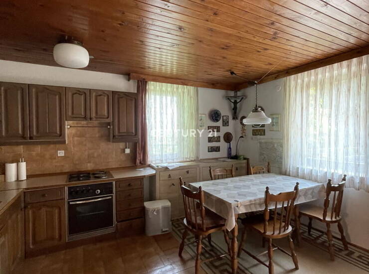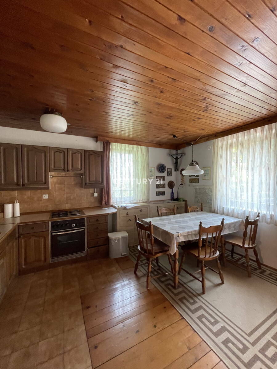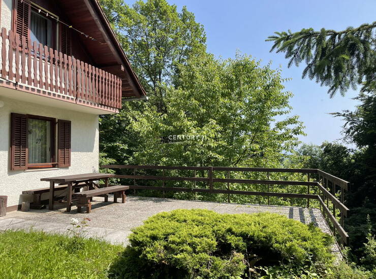 Na čudoviti, sončni lokaciji v mirnem in slikovitem naselju Topol pri Medvodah, pod znamenito Sveto Katarino, prodamo samostojno stanovanjsko hišo s skupno površino 160,8 m2. Hiša stoji v osrčju narave, na prostornem stavbnem zemljišču velikosti 1.611 m2, kjer mir, zasebnost ter zeleno okolje z lepimi razgledi ustvarjajo edinstven občutek umirjenosti in povezanosti z naravo. Hiša je zidana iz opeke in razporejena v treh etažah (K+P+M) s skupno bivalno površino 85,2 m2. V pritličju se nahaja kuhinja z jedilnim delom, prijeten dnevni prostor z izhodom na veliko teraso, kopalnica s kadjo in vhodna veža. Mansarda ponuja spalnico, otroško sobo, dodatno sobo oziroma kabinet, ki je primeren za različne namene, ter hodnik. Kletni prostori v skupni izmeri 29,5 m2 vključujejo utility z WC-jem, večnamenski prostor, dve shrambi in hodnik, pri čemer je klet dostopna tako iz notranjosti hiše kot tudi preko samostojnega vhoda. Garaža velikosti 17,1 m2 se nahaja pod veliko teraso. Ogrevanje je urejeno s kaminom na trda goriva in IR-paneli. Okna so lesena, dvoslojna, opremljena z zunanjimi polknami. Talne obloge obsegajo keramiko in ladijski pod, kar prostoru daje prijeten občutek domačnosti. Hiša se prodaja opremljena in je vseljiva takoj. Nepremičnina ima urejeno dokumentacijo. Na zemljišču se nahajata lesen pomožni objekt za shranjevanje orodja in drv ter lesen nadstrešek za osebno vozilo, oba v izmeri 12 m2. Na voljo so najmanj štiri parkirna mesta. Hiša leži na sredini parcele, omaknjena od ceste, skrita v zelenju in obdana z naravo. Meji na zeleni pas in gozd, kar zagotavlja veliko zasebnosti. Parcela je bogato zasajena z različnim sadnim drevjem in drugimi koristnimi rastlinami, kot so divja češnja, jablana, češnja, lešnik, kostanj in bezek. Zaradi velikosti in celotne stavbne namembnosti zemljišča je možna tudi gradnja dodatnih objektov, kar omogoča številne možnosti za razširitev in nadgradnjo obstoječe uredit