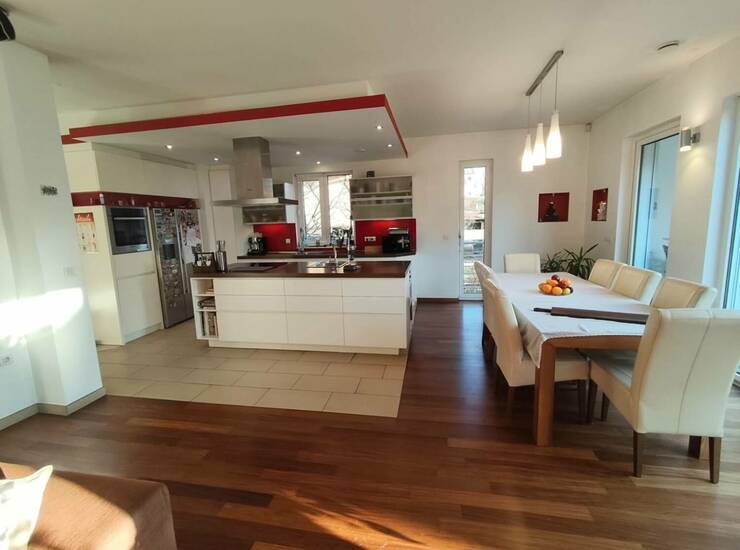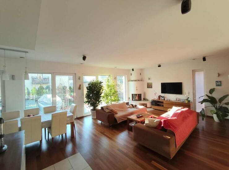 Terasa: 30 m² (8 m² pokritega dela) z vsemi priključki za zunanjo kuhinjo.