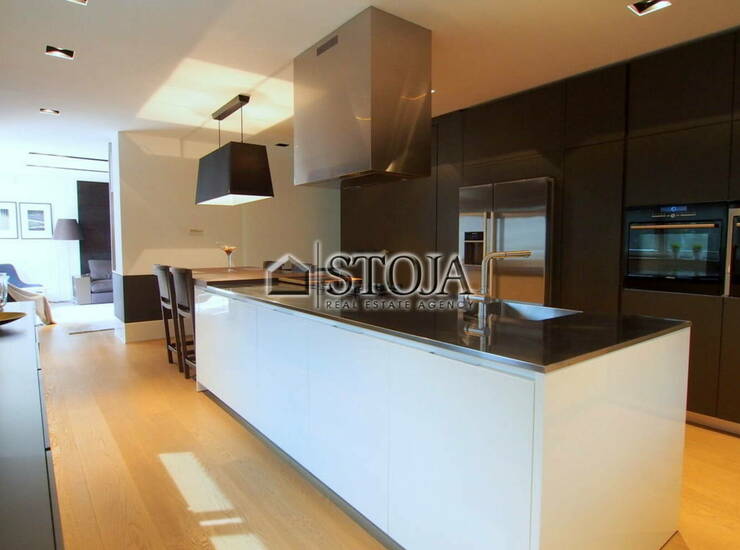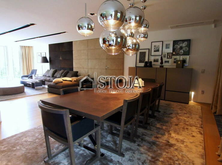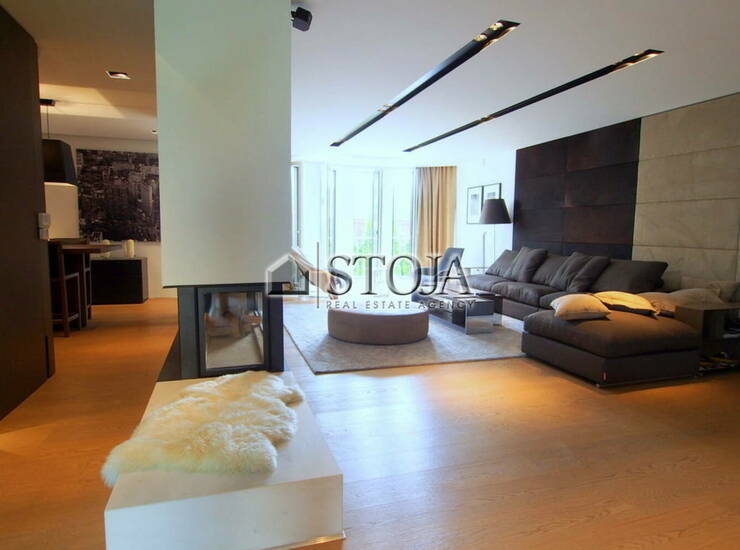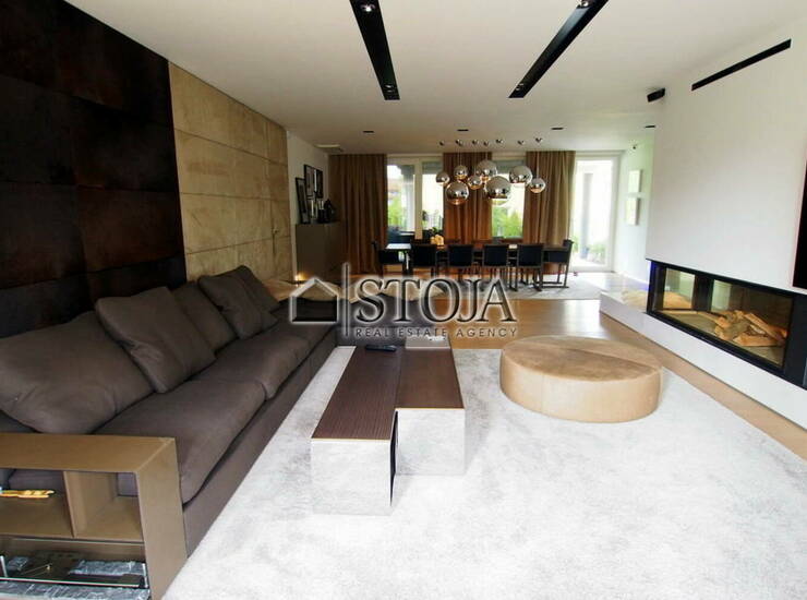 Prodamo zelo kvalitetno izdelano hišo, ki se nahaja na mirni lokaciji v Mostah, v neposredni bližini vse potrebne infrastrukture. Hiša je moderno opremljena z opremo višje kakovosti. Pohištvo je izdelano po meri, parket in okna so troslojna. Hiša ima vgrajen sistem varovanja in je obdana z betonsko ograjo.Razporeditev prostorov:Pritličje z razkošno dnevno sobo s kaminom, jedilnico, kuhinjo, garderobno sobo, spalnico s svojo kopalnico, teraso z masažnim bazenom ter teraso z izhodom na vrt.1. nadstropje ima dve ločeni dvosobni stanovanji s teraso ter dodatno sobo za goste s kopalnico.V kleti je velika soba za druženje, vinska klet, kamin, soba za goste s kopalnico, kurilnica (ogrevanje na plin), shramba in utility.Na dvorišču je omogočeno parkiranje za 10 avtomobilov.Hiša je opremljena, klimatizirana in vseljiva v kratkem.Pogoj lastnika za sklenitev posla: Kupec plača davek na promet nepremičnin v višini 2 % prodajne cene.
