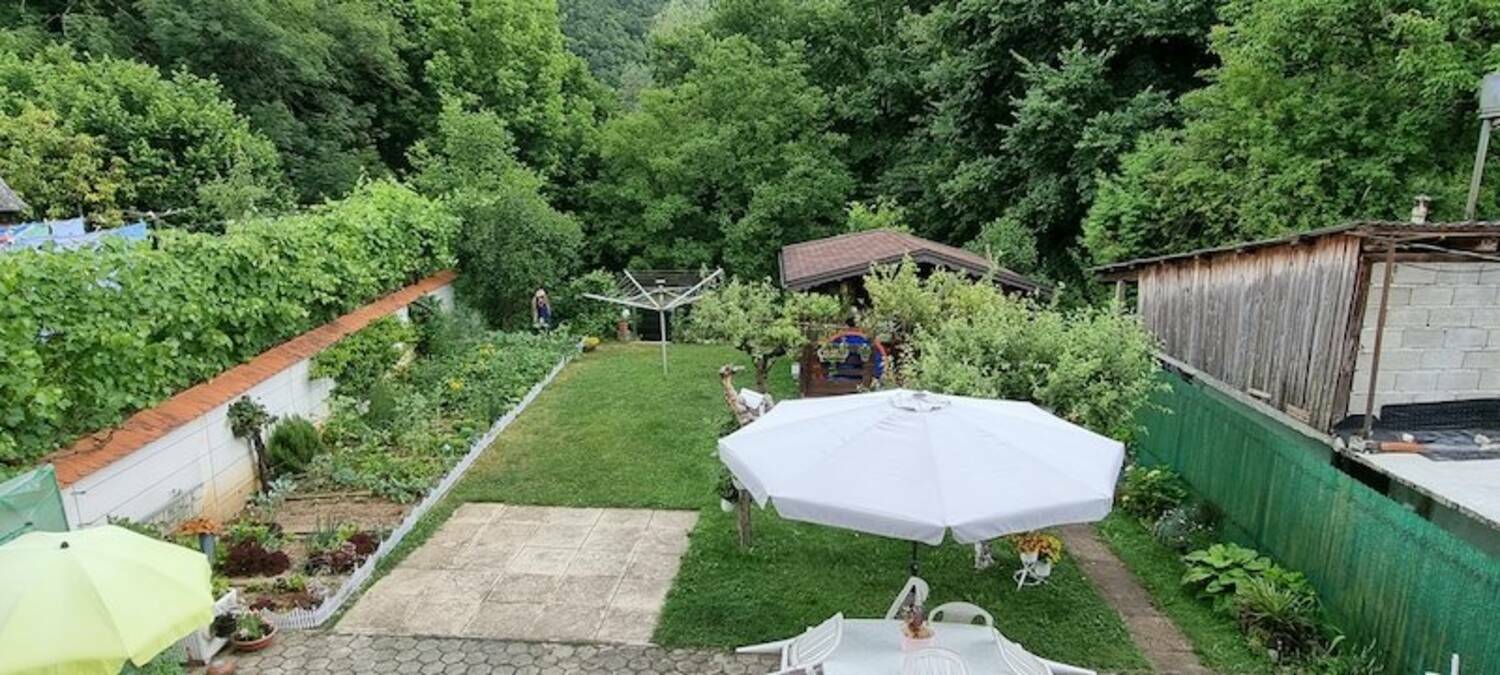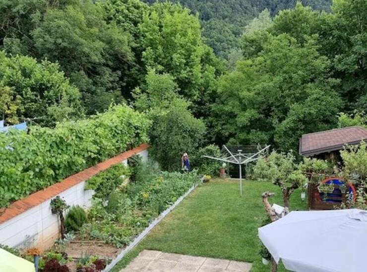 Hiša ima veliko parkirišče za 3 avtomobile in urejen vrt z lopo. Okolica hiše je zelo lepo urejena.