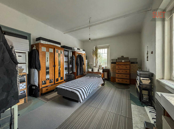 Mansardni del, ki ima ločen vhod, obsega: kopalnico, kuhinjo, 2 veliki sobi (spalnica in dnevni prostor) in večnamenski prostor oz. shrambo.