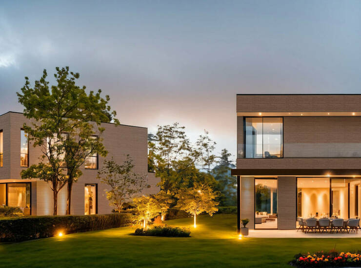 Parcela meri 579 m² in je obdana z zelenjem, kar zagotavlja prijetno zasebnost. Zunanja ureditev pa omogoča ustvarjanje prijetnega kotička za poletna druženja. Strehe so ravne nepohodne, hidro in toplotno izolirane ter krite s prodcem.