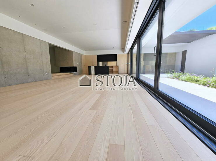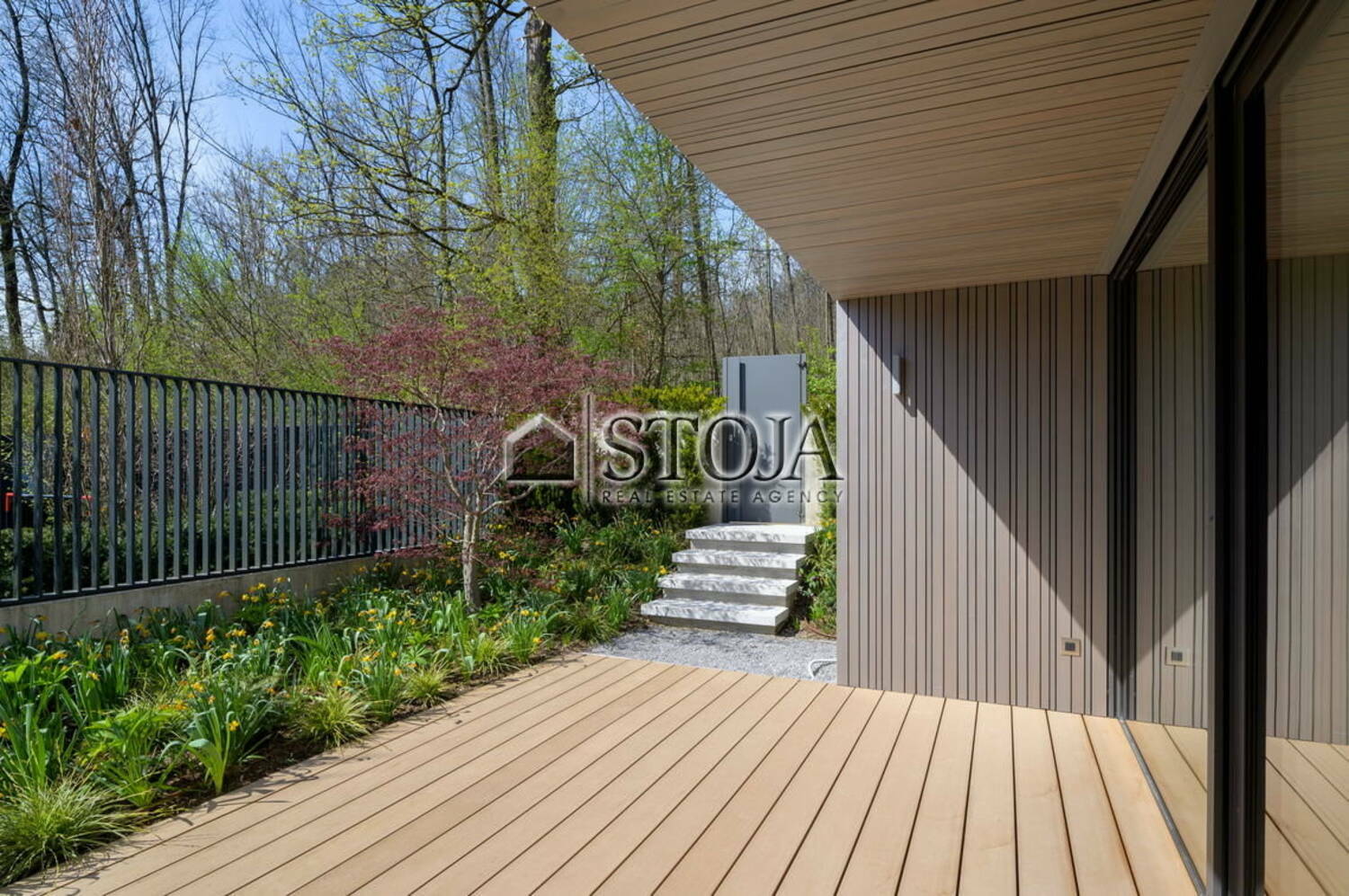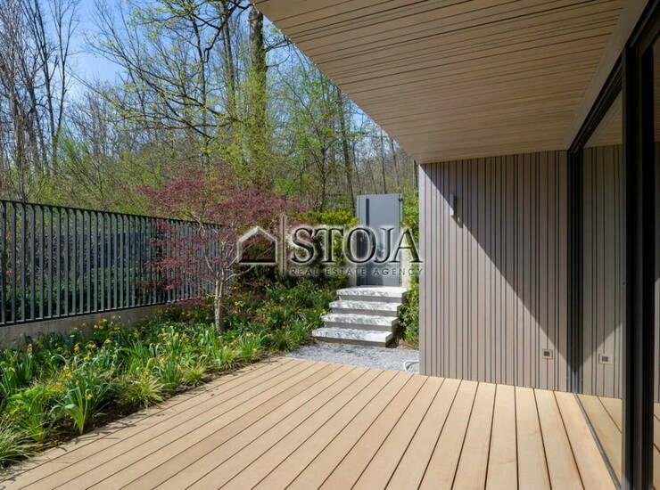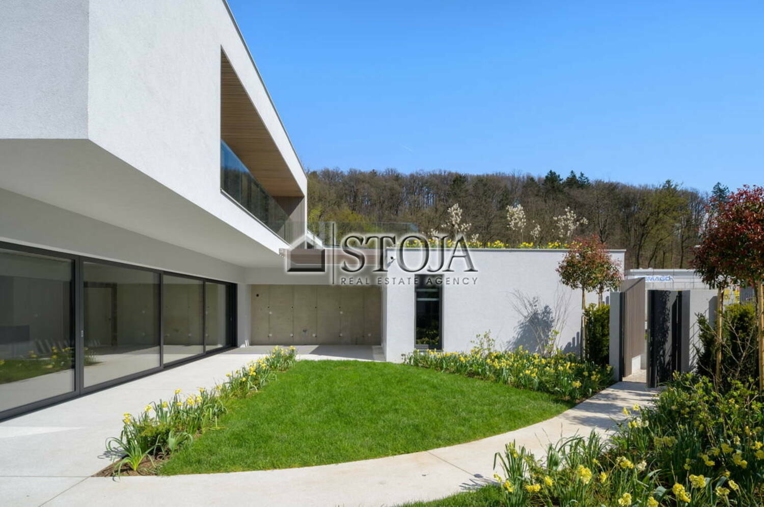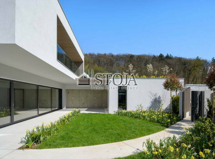 Prestižna Vila s fantastičnim razgledom na Rožno Dolino in hribovjem Krima.Pravkar dograjena prestižna reprezentativna vila v zelenju v neposredni bližini Tivolija in centra mesta, z izjemnimi pogledi na Rožnik kot tudi proti gori Krim. Uporabno dovoljenje pridobljeno.Lokacija:Skoraj v centru mesta ob Rožniku se nahaja luksuzna pravkar dokončana vila s čudovito zasajenimi vrtovi v treh nivojih in osupljivim razgledom s terase, ki seže vse do Krima. Ta luksuzna nepremičnina se nahaja na izjemni lokaciji v okolišu podobnih prestižnih vil in le 7 min peš do Cankarjevega doma ter ima na hrbtni strani svoj zasebni izhod na pešpot in trim stezo od Tivolija proti posestvu Čad.Opis & razporeditev vile, katera ima tri etaže:- pritličje z odprtimi bivalnimi prostori na intimni vrt, velika garaža 40 m2 s 5 metrskimi garažnimi vrati + 3 parkirna mesta,- prvo nadstropje s 3 sobami povezanimi z zazelenjeno teraso in vrtom, ki ima direktni izhod na sprehajalnopot za hišo ter atraktivno,- terasno etažo z modernim odprtim tlorisom in veliko zasebno teraso s čudovitim pogledom na Krim in gozd. Vila ima 5 dizajnersko opremljenih kopalnic, premišljeno vgrajene knjižne omare, vsaka soba ima izhod na loggio in naprej na luksuzno zasajene vrtove.Površine & prostori vile: Terasa: 3xLoggie: 3xSpalnice: 4x (lahko tudi 5)Sobe (vse skupaj):7Kopalnice: 5xGarderobne sobe: 1xShrambe: 3xDnevna soba ima dizajnersko oblikovan kotiček s kaminom, ki je povezan s savno. Vrata so nadstandardne višine in vsi vgrajeni materiali so naravni in skrbno izbrani. Tehnološka oprema je visoke kvalitete in vila je praktično samooskrbna.Vila, ki je delo vrhunskega arhitekturnega biroja, očara s svojo premišljeno zasnovo, izjemno svetlostjo in prečudovitimi pogledi na z letnimi časi spreminjajoče se vrtove, ki jih je zasnovala priznana hortikulturnica.Tehnična oprema hiše:toplotna črpalka ima kapaciteto 15kWh,plinska peč in pripravljen plinski priključek,sončna elektrarn