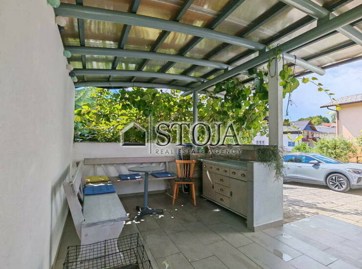Prodamo obnovljeno in kvalitetno grajeno samostojno hišo na lepi, sončni in lahko dostopni lokaciji. Hiša trenutno deluje kot dvostanovanjska in je grajena v dveh etažah, od katerih ima vsaka ločen vhod, v notranjosti pa sta povezani tudi z internim stopniščem. Hiša je proti-potresno grajena in lepo vzdrževana. Stene, tlaki in stropovi so izolirani, 3-slojna okna so zamenjana, prav tako streha ter izolacijska fasada. Hišo obdaja urejena okolica s sadnim drevjem in dvoriščem za parkiranje cca. 4 vozil. Funkcionalna razporeditev prostorov v pritličju obsega hodnik z garderobo, bivalna kuhinja s kurilnico v kombinaciji s pečjo na kurilno olje in toplotno črpalko za ogrevanje sanitarne vode, soba za goste, kopalnica, shramba in glavna spalnica. Zunaj je locirana še večja pokrita terasa za druženje z vrtno lopo in pa vkopan kletni prostor za shranjevanje orodja.V nadstropju pa se prav tako nahaja pokrita terasa za druženje, predprostor z garderobo, kopalnica, kuhinja z jedilnico, dnevni prostor z izhodom na balkon, otroški kabinet ter spalnica. Hiša ima lep razgled, locirana je le minuto vožnje do AC priključka, LPP avtobusna postaja in živilska trgovina pa sta dostopni peš. Priklop na javno kanalizacijo še ni izveden, povprečni obratovalni stroški za obe bivalni enoti pa znašajo cca. 300€/mesec. Hiša je brez bremen in na voljo po dogovoru, vabljeni k ogledu! Kupec ne plača posredniške provizije. Pogoj prodajalca za sklenitev posla: Kupec plača davek na promet nepremičnin v višini 2 % prodajne cene.