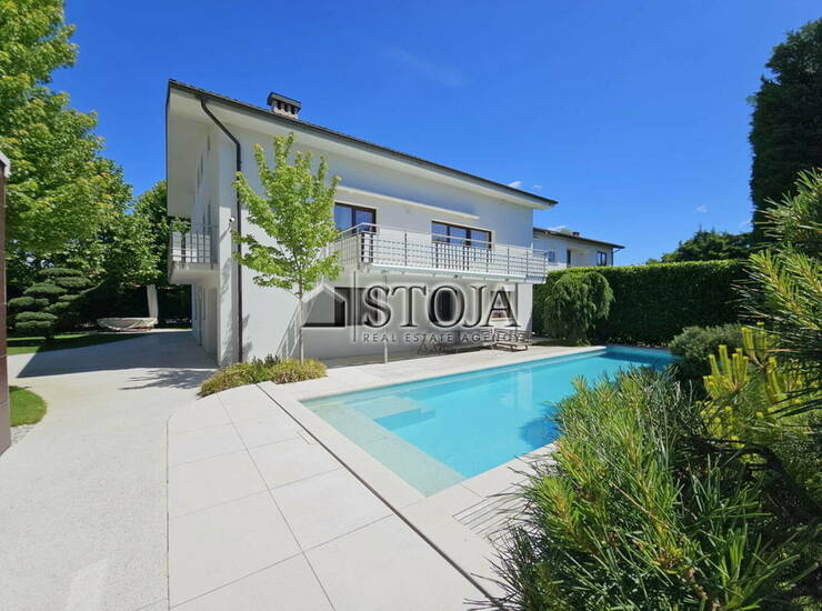 Zelena oaza v urbanem okolju.Prodamo hišo z velikim in lepo urejenim vrtom, ki zagotavlja popolno intimo, 13,5 metra dolgim bazenom ter ločenim večnamenskim/garažnim objektom. Nepremičnina se nahaja na odlični lokaciji na Viču.Hiša nudi obilo bivalnega prostora in se prilagaja različnim življenjskim slogom. Poleg velikega, odprtega dnevnega prostora vključuje tudi 5–6 spalnic, več kopalnic, rekreativne površine, savno, delavnico/hobi sobo itd. Zaradi prilagodljive zasnove je primerna tudi za protokolarne namene, saj omogoča ločitev prostorov za sprejeme in zasebno uporabo.Zaradi povezave pritličnih površin z izjemno lepo urejenim in prostornim vrtom je hiša idealna za organizacijo večjih sprejemov in dogodkov. Vse utrjene površine okoli objektov so zaključene v brušenem betonu.Celotno zemljišče je tehnično varovano z alarmnim in video nadzornim sistemom.Hiša obsega 405 m² bivalnih površin, razporejenih v treh etažah (pritličje, nadstropje in mansarda). Leta 2018 je bila v celoti prenovljena in je do danes vrhunsko vzdrževana.Poleg hiše se nahaja dodaten objekt (240 m², pritličje), ki trenutno služi kot garaža za 4 do 5 avtomobilov ter rekreativne in družabne površine. Ker je izjemno dobro urejen, lahko služi tudi za večje dogodke ali sprejeme. Na zadnji strani objekta je večja shramba.Bazen pravokotnega tlorisa (13,5 × 4,5 m) z globino do 1,85 m je ogrevan s toplotno črpalko.Hiša se primarno ogreva na mestni plin, sanitarni prostori pa imajo dodatno električno ogrevanje, kar omogoča tople kopalnice tudi izven ogrevalne sezone.Vabljeni na ogled!Kupec nima stroškov posredovanja pri nakupu nepremičnine.Prodajalec ima samo en pogoj za sklenitev posla:Kupec plača davek na promet nepremičnin v višini 2 % prodajne cene. Hiša je takoj vseljiva.