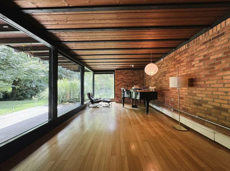 pritličje – prostoren in svetel dnevnobivalni del z izhodom na sončno teraso in vrt, kuhinja, spalnica z lastno kopalnico in dvema garderobnima sobama, 2 sobi, kopalnica, toaleta za goste, garaža, drvarnica