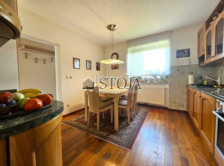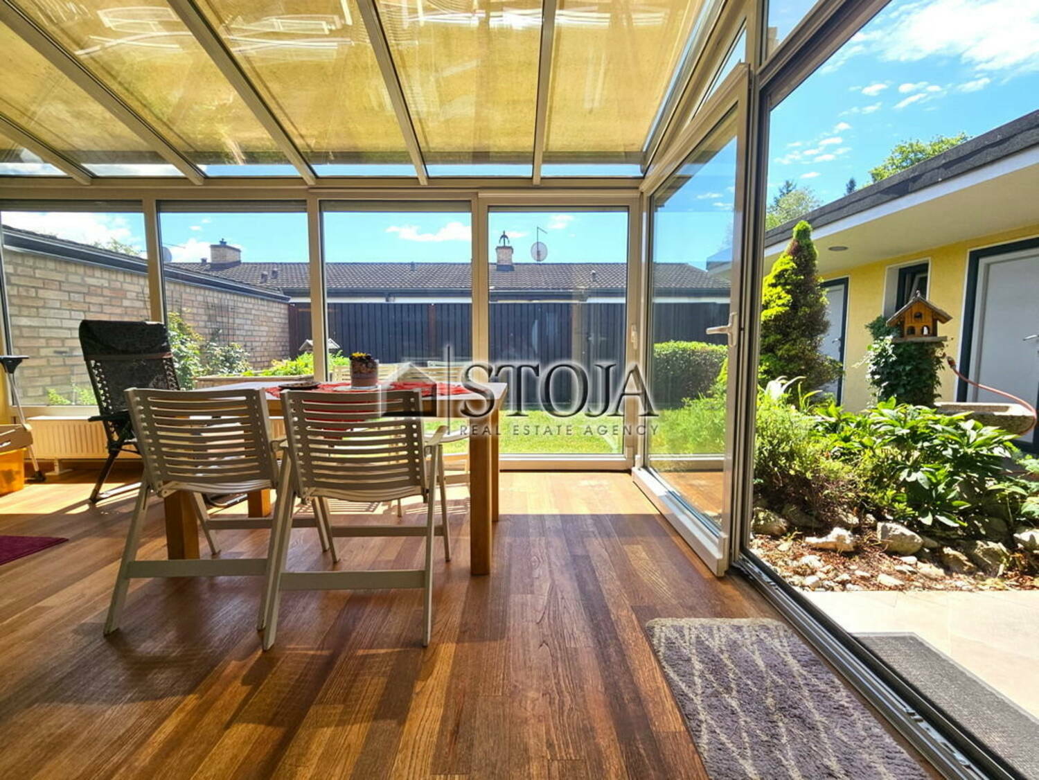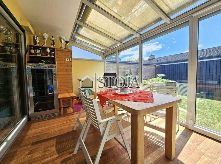 Posredujemo pri prodaji vrstne hiše z atrijem v priljubljeni soseski Murgle, Ljubljana z dvema parkirnima mestoma v garaži!Predstavljamo vam atrijsko vrstno hišo s skupno površino cca 108m2, od tega po podatkih Gursa 76,3 m² bivalne. Hiša je zadnja v nizu in se nahaja na parceli v velikosti 294 m² v urejeni in mirni soseski Murgle, Vič-Rudnik. Hiša je orientirana na jug, kar zagotavlja obilo naravne svetlobe skozi ves dan ter prijetno bivalno okolje.Hiša sestoji iz predsobe iz katere lahko vstopimo v utility. Iz predsobe se stopi na hodnik L-oblike, iz katerega dostopamo do ločenega WC, kuhinje z jedilnico, dnevne sobe z izhodom na zimski vrt in atrij, glavne kopalnice in 3 sob. Ena izmed treh sob je večja in ima izhod na atrij, ostali dve sta manjši, primerni za otroško sobo ali domačo pisarno. Zunaj na dvorišču je še večja vrtna hiša z dvema ločenima prostoroma. Skupaj s hišo se prodajata tudi dve garaži (ena ima tudi električno polnilnico) v neposredni bližini hiše.Hiša je že bila renovirana okoli l. 2010 (okna, tla, vhod, vrata, kopalnica, kuhinja, streha, fasada...), je ena redkih hiš v Murglah, ki ima toplotno črpalko (11kw). Poleg tega je lastnik investiral tudi v sončno elektrarno (10,4kw), kar v kombinaciji s toplotno črpalko zagotavlja izjemno nizke stroške porabe energije. V hiši sta nameščeni tudi dve klimatski napravi. Posebnosti hiše so še okna z lepljenim steklom na aluminjastih okvirji (neprebojno) ter vgrajena manjša savna na zimskem vrtu!Hiša se nahaja v neposredni bližini narave, kar je idealno za vse, ki cenijo mir in možnost rekreacije. Lokacija v Murgleh ponuja hitro dostopnost do vseh ključnih urbanih vsebin, šol, trgovin ter odličnih povezav z ostalimi deli Ljubljane. Mirna in zelena okolica ter bližina PST zagotavlja visoko kakovost bivanjaLASTNOSTI HIŠE:cca 108m2 bruto površine, od tega 76,3m2 bivalne;urejen in ograjen atrij, vrtna hiška ter prostoren zimski vrt;2 parkirni mesti v gar