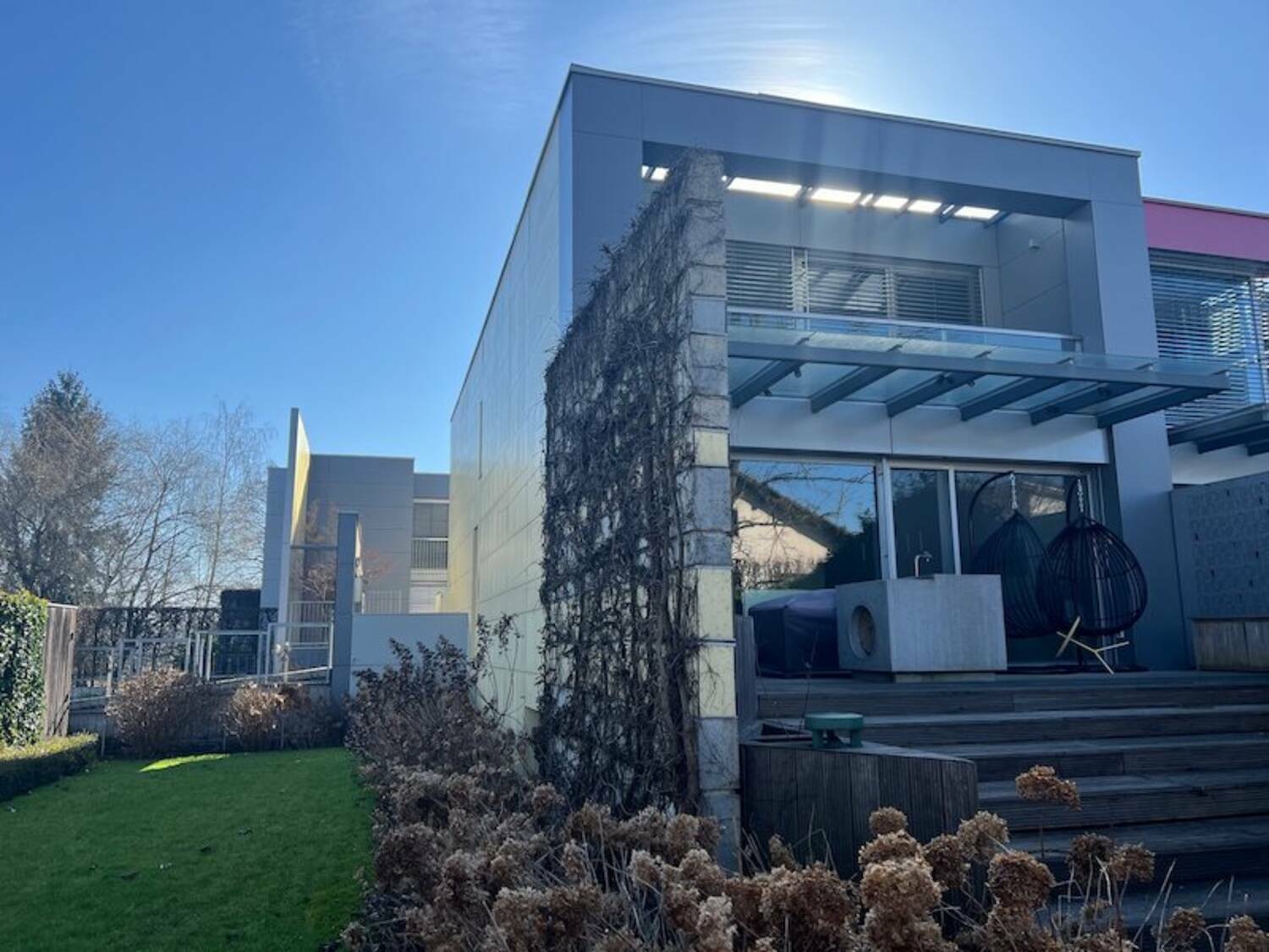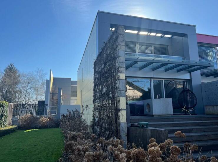 Ekskluzivna, moderna, končna vrstna hiša v skupni izmeri 254 m2 ponuja družini ali posameznikom lepo bivanje v notranjosti objekta, kot tudi na vrtu.. Zemljišče skupaj s stavbiščem meri 425 m2. Vrt je delno prekrit s tropskim lesom. . Vsi vgrajeni materiali so višjega cenovnega razreda. V garaži je možno parkirati 3 vozila (možnost polnjenja el. avtomobila).