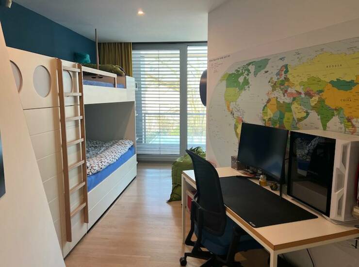 NADSTROPJE : Tukaj se nahajajo spalnica s kopalnico in dve otroški sobi in še ena kopalnica. Vse sobe imajo izhod na balkon.