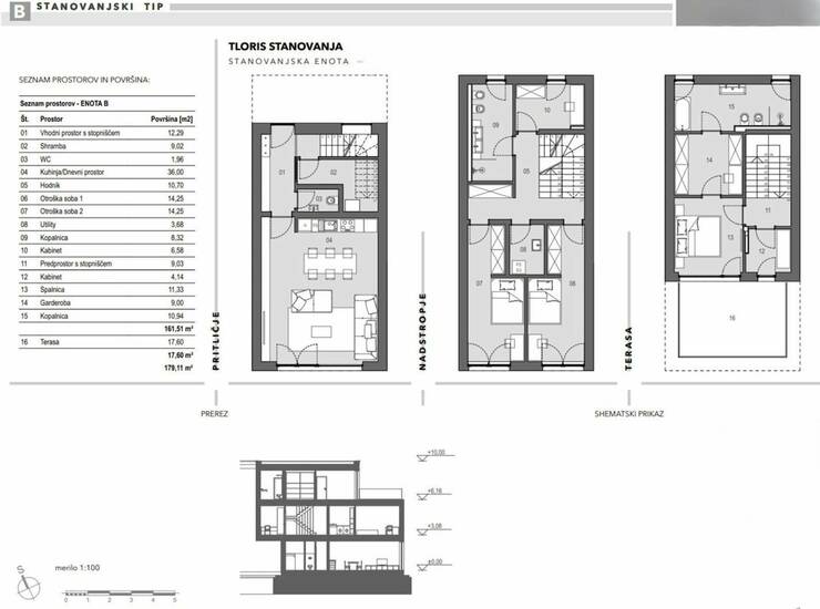 ✔ Kvadratura: 161,51 m² bivalna površina in 17,60 m² strešna terasa