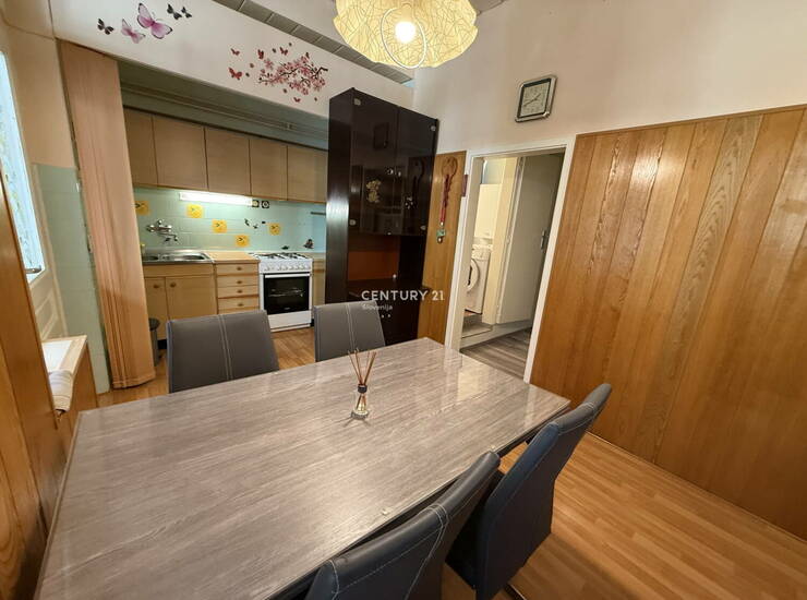 Staromeščansko stanovanje v samem središču Ljubljane – Slovenska cesta. V prodaji je popolnoma obnovljeno staromeščansko stanovanje, zasnovano z mislijo na udobje in kakovost bivanja. Stanovanje se nahaja v urejeni stavbi z obnovljeno streho in fasado (prenovljeno leta 1994) ter le nekaj korakov stran od fakultet, trgovin, sodišča, bank, avtobusne in železniške postaje, hotelov, restavracij in kavarn. Na zahodni strani, kjer stanovanje gleda na Slovensko cesto, so vgrajena nova protizvočna okna, ki zagotavljajo mirno in nemoteče bivanje. Zaradi visokih stropov (3,42 m) so prostori zračni, svetli in ustvarjajo prijeten občutek prostornosti. Stanovanje krasi nova vinilna talna obloga, ki daje moderen videz in dodatno udobje, vgrajene so nove kljuke ter protivlomna vrata. Tlorisno stanovanje obsega: predprostor, ki gleda na notranji atrij, kuhinjo z jedilnico, veliko predeljeno sobo s pogledom na Slovensko cesto, kopalnico, ločeno stranišče, klet (8,70 m2) in kolesarnico v atriju stavbe. Po podatkih GURS ima stanovanje neto tlorisno površino 60,10 m2, od tega 51,40 m2 uporabne površine. Ogrevanje je na toplovod, topla voda in štedilnik na plin, nameščena je klima naprava, v stanovanju so vsi priključki in optika. Stanovanje je takoj vseljivo in se prodaja z vso opremo. Stroški so glede na lokacijo nizki in odvisni od porabe. V stavbi je načrtovana vgradnja dvigala, za katerega se namensko varčuje že več let. Zaradi velikega potenciala preureditve je nakup odlična investicijska priložnost tako za bivanje kot za oddajanje. Kupec plača davek na promet nepremičnin v višini 2%. Pogoj prodajalca je, da mu kupec povrne del stroškov posredovanja v višini 2 % + DDV od prodajne cene.