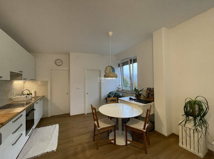 Na Steletovi cesti v Kamniku prodamo prenovljeno in popolnoma opremljeno 2,5-sobno stanovanje v skupni izmeri 48 m2. Nahaja se v tretjem, obenem tudi zadnjem nadstropju poslovno-stanovanjske stavbe, kar zagotavlja več zasebnosti in miru. Prostorska razporeditev je premišljena in omogoča optimalen izkoristek prostora. Svetlo in prijetno oblikovano stanovanje obsega odprt dnevno-bivalni prostor s kuhinjo in jedilnim kotom, spalnico, otroško sobo, kopalnico ter vhodni prostor. Stanovanje nima balkona. Stanovalcem je na voljo uporaba skupne kolesarnice. Stanovanje je bilo leta 2023 prenovljeno. Prenova je obsegala novo električno napeljavo, položitev novih talnih oblog, popolno prenovo kopalnice ter vgradnjo nove kuhinje z lesenimi elementi, klimatske naprave, zunanjih rolet in bojlerja. Prodaja se v celoti opremljeno in je vseljivo v roku enega meseca po plačilu celotne kupnine. Tehnične lastnosti: Ogrevanje: centralno na zemeljski plin preko radiatorjev z termostatskimi ventili. Klimatska naprava v dnevnem prostoru. Tlaki: vinil v bivalnem delu, keramika v kopalnici. Okna: lesena, dvoslojna zasteklitev, zunanje aluminijaste rolete. Bivalno udobje: sistem rekuperacije zraka v kopalnici, domofon, optični priključek. Nizki obratovalni stroški. Stanovanje je orientirano proti severu in zahodu, kar zagotavlja prijetno svetlobo in manjšo izpostavljenost poletni vročini. Stavba je brez dvigala, zanjo skrbi upravnik, streha pa je bila zamenjana leta 2023. Parkiranje je urejeno neposredno pred stavbo in je namenjeno izključno stanovalcem objekta, v neposredni bližini pa je možno tudi najeti ali kupiti parkirno mesto v garaži. Lokacija ponuja vse, kar potrebujete za udobno bivanje – trgovine, vrtec, šolo, knjižnico, glasbeno šolo in center Kamnika so le nekaj minut hoje stran. Arboretum Volčji Potok je oddaljen le pet minut vožnje. Prodajalec pogojuje, da kupec prevzame del stroškov prodaje v višini 2% (+DDV) od pogodbene