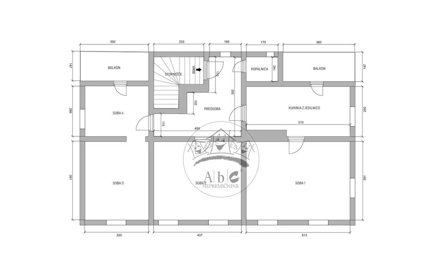 STANOVANJE V 1. NADSTROPJE: TLORISNA ZASNOVA: