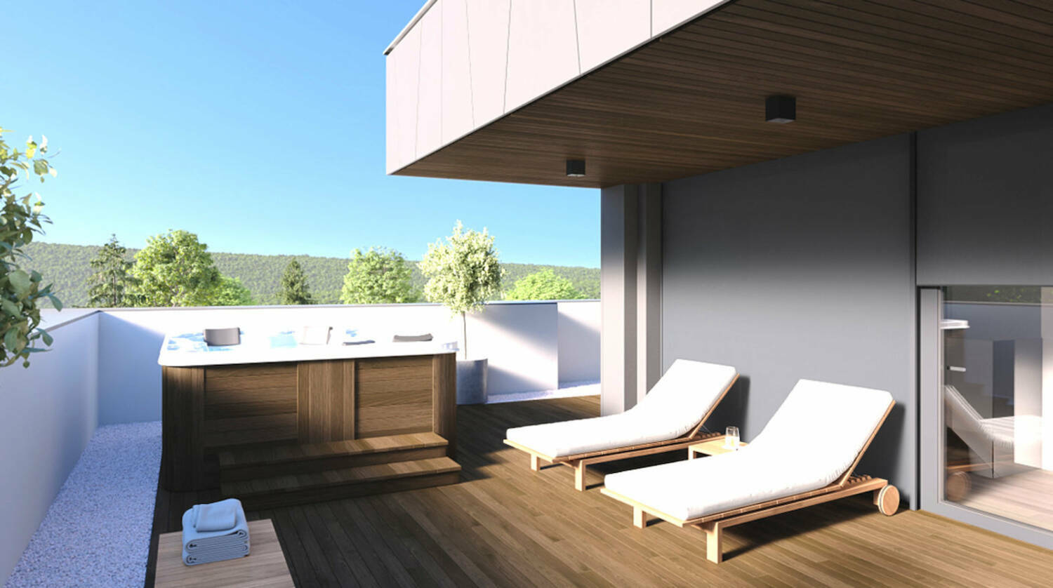 LUKSUZNI DUPLEX Z DVIGALOM, S PANORAMSKIMI RAZGLEDI IN VELIKIMI TERASAMI - VAŠA ZASEBNA OAZA V PODUTIKU