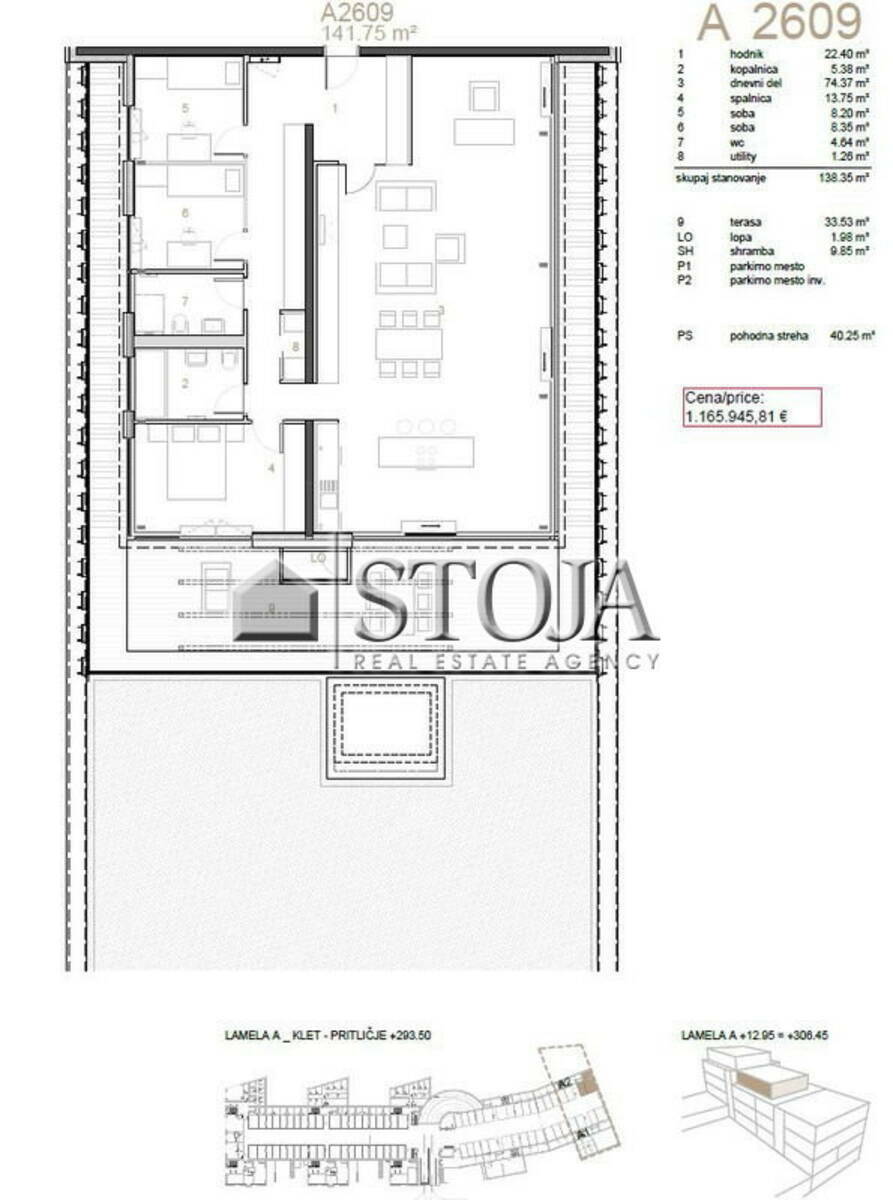 Soseska Devana Park II, ki se nahaja na pobočju Golovca, na eni izmed najbolj zaželenih lokacij v Ljubljani, združuje prednosti mestnega življenja in narave. Projekt se bliža zaključku, stanovanja pa so že na voljo za takojšnjo vselitev.Na voljo so različna stanovanja – od garsonjer do prostornih 4-sobnih stanovanj, velikosti od 34,80 m² do 141,75 m². Večina stanovanj vključuje tudi zunanjo površino, razgledi pa ponujajo čudovito panoramo Ljubljane in Alp. Soseska ponuja mirno okolje v bližini mestnega jedra, kar omogoča enostaven dostop do vsega, kar Ljubljana ponuja, hkrati pa uživate v spokojnosti narave.Na voljo sta tudi kar dve vzorčni stanovanji (D1303 in A2506), ki sta opremljeni, da si lahko enostavno predstavljate, kako bo vaš novi dom izgledal. Stanovanja so pripravljena za vselitev takoj, brez čakanja ali tveganja zamud, kar vam omogoča, da že po nakupu uživate v svojem novem domu.Vsa stanovanja so zasnovana z vrhunskimi materiali in prostornimi bivalnimi enotami, ki vključujejo velike steklene površine in terase.Slike in vizualizacije so zgolj informativne narave. Razporeditev prostorov ter kvadrature za dotično stanovanje so prikazane na priloženem tlorisu. V ceno je že vključen DDV ter pripradajoče število parkirnih mest in shramba. Video vsebine: https://www.stoja-projects.com/devana-park-ii