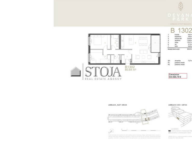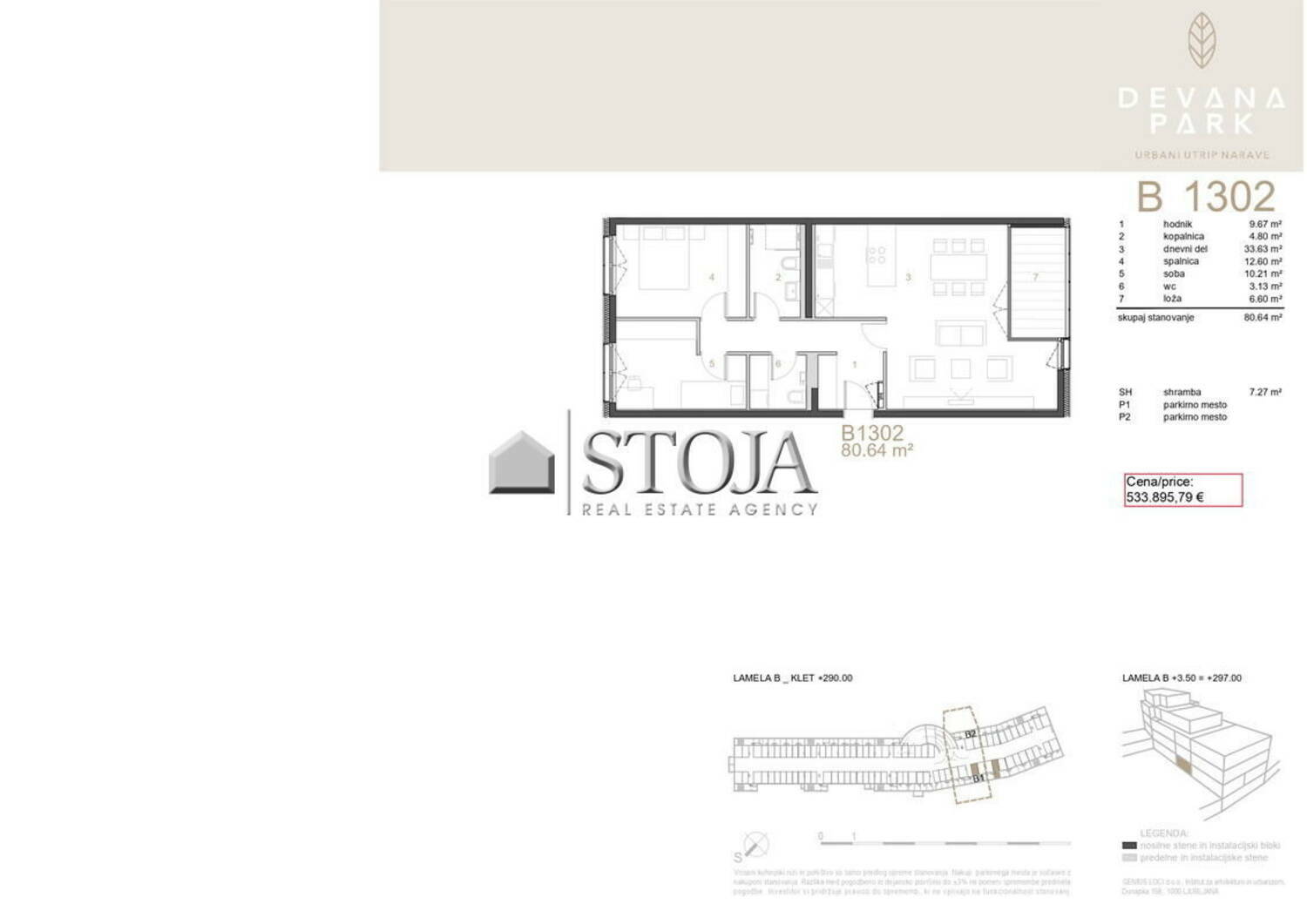 Soseska Devana Park II, ki se nahaja na pobočju Golovca, na eni izmed najbolj zaželenih lokacij v Ljubljani, združuje prednosti mestnega življenja in narave. Projekt se bliža zaključku, stanovanja pa so že na voljo za takojšnjo vselitev.Na voljo so različna stanovanja – od garsonjer do prostornih 4-sobnih stanovanj, velikosti od 34,80 m² do 141,75 m². Večina stanovanj vključuje tudi zunanjo površino, razgledi pa ponujajo čudovito panoramo Ljubljane in Alp. Soseska ponuja mirno okolje v bližini mestnega jedra, kar omogoča enostaven dostop do vsega, kar Ljubljana ponuja, hkrati pa uživate v spokojnosti narave.Na voljo sta tudi kar dve vzorčni stanovanji (D1303 in A2506), ki sta opremljeni, da si lahko enostavno predstavljate, kako bo vaš novi dom izgledal. Stanovanja so pripravljena za vselitev takoj, brez čakanja ali tveganja zamud, kar vam omogoča, da že po nakupu uživate v svojem novem domu.Vsa stanovanja so zasnovana z vrhunskimi materiali in prostornimi bivalnimi enotami, ki vključujejo velike steklene površine in terase.Slike in vizualizacije so zgolj informativne narave. Razporeditev prostorov ter kvadrature za dotično stanovanje so prikazane na priloženem tlorisu. V ceno je že vključen DDV ter pripradajoče število parkirnih mest in shramba. Video vsebine: https://www.stoja-projects.com/devana-park-ii