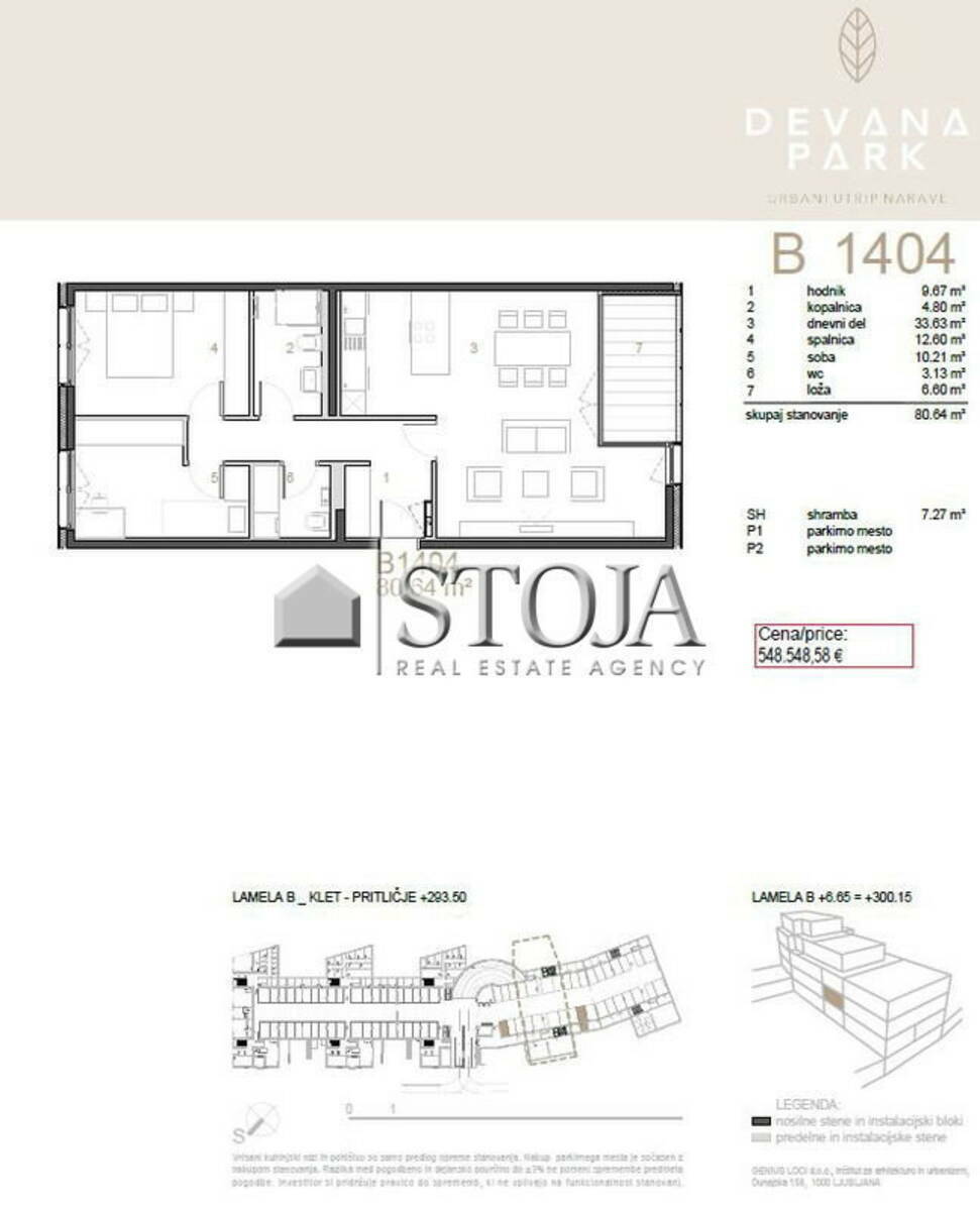 Soseska Devana Park II, ki se nahaja na pobočju Golovca, na eni izmed najbolj zaželenih lokacij v Ljubljani, združuje prednosti mestnega življenja in narave. Projekt se bliža zaključku, stanovanja pa so že na voljo za takojšnjo vselitev.Na voljo so različna stanovanja – od garsonjer do prostornih 4-sobnih stanovanj, velikosti od 34,80 m² do 141,75 m². Večina stanovanj vključuje tudi zunanjo površino, razgledi pa ponujajo čudovito panoramo Ljubljane in Alp. Soseska ponuja mirno okolje v bližini mestnega jedra, kar omogoča enostaven dostop do vsega, kar Ljubljana ponuja, hkrati pa uživate v spokojnosti narave.Na voljo sta tudi kar dve vzorčni stanovanji (D1303 in A2506), ki sta opremljeni, da si lahko enostavno predstavljate, kako bo vaš novi dom izgledal. Stanovanja so pripravljena za vselitev takoj, brez čakanja ali tveganja zamud, kar vam omogoča, da že po nakupu uživate v svojem novem domu.Vsa stanovanja so zasnovana z vrhunskimi materiali in prostornimi bivalnimi enotami, ki vključujejo velike steklene površine in terase.Slike in vizualizacije so zgolj informativne narave. Razporeditev prostorov ter kvadrature za dotično stanovanje so prikazane na priloženem tlorisu. V ceno je že vključen DDV ter pripradajoče število parkirnih mest in shramba. Video vsebine: https://www.stoja-projects.com/devana-park-ii