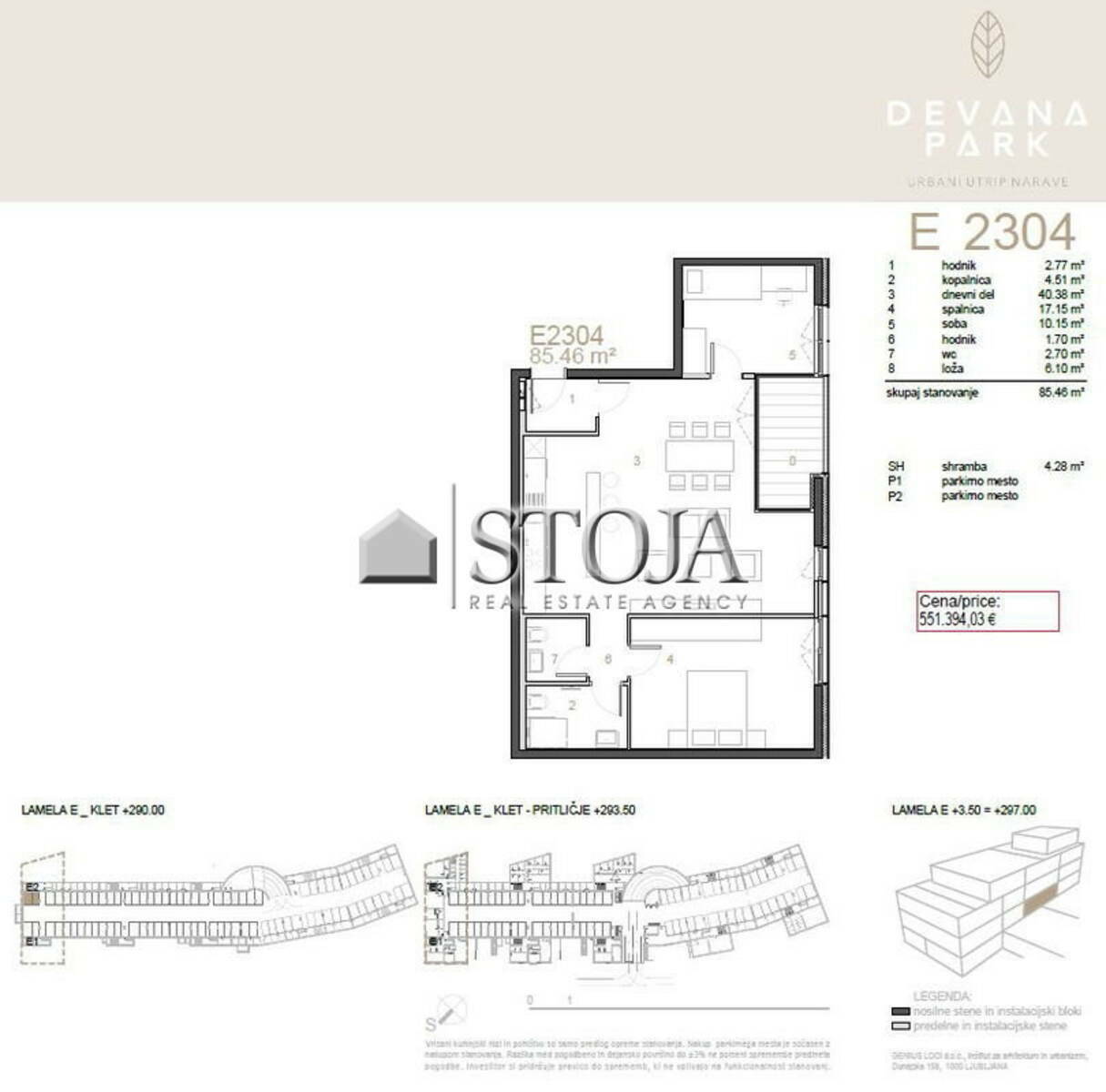 Soseska Devana Park II, ki se nahaja na pobočju Golovca, na eni izmed najbolj zaželenih lokacij v Ljubljani, združuje prednosti mestnega življenja in narave. Projekt se bliža zaključku, stanovanja pa so že na voljo za takojšnjo vselitev.Na voljo so različna stanovanja – od garsonjer do prostornih 4-sobnih stanovanj, velikosti od 34,80 m² do 141,75 m². Večina stanovanj vključuje tudi zunanjo površino, razgledi pa ponujajo čudovito panoramo Ljubljane in Alp. Soseska ponuja mirno okolje v bližini mestnega jedra, kar omogoča enostaven dostop do vsega, kar Ljubljana ponuja, hkrati pa uživate v spokojnosti narave.Na voljo sta tudi kar dve vzorčni stanovanji (D1303 in A2506), ki sta opremljeni, da si lahko enostavno predstavljate, kako bo vaš novi dom izgledal. Stanovanja so pripravljena za vselitev takoj, brez čakanja ali tveganja zamud, kar vam omogoča, da že po nakupu uživate v svojem novem domu.Vsa stanovanja so zasnovana z vrhunskimi materiali in prostornimi bivalnimi enotami, ki vključujejo velike steklene površine in terase.Slike in vizualizacije so zgolj informativne narave. Razporeditev prostorov ter kvadrature za dotično stanovanje so prikazane na priloženem tlorisu. V ceno je že vključen DDV ter pripradajoče število parkirnih mest in shramba. Video vsebine: https://www.stoja-projects.com/devana-park-ii