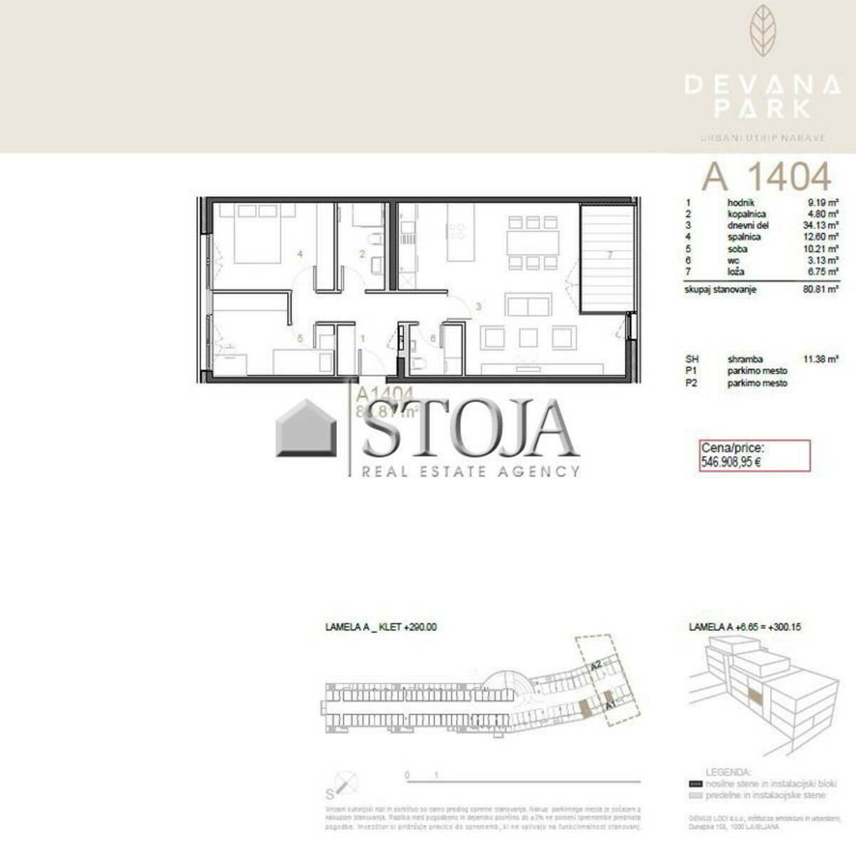 Soseska Devana Park II, ki se nahaja na pobočju Golovca, na eni izmed najbolj zaželenih lokacij v Ljubljani, združuje prednosti mestnega življenja in narave. Projekt se bliža zaključku, stanovanja pa so že na voljo za takojšnjo vselitev.Na voljo so različna stanovanja – od garsonjer do prostornih 4-sobnih stanovanj, velikosti od 34,80 m² do 141,75 m². Večina stanovanj vključuje tudi zunanjo površino, razgledi pa ponujajo čudovito panoramo Ljubljane in Alp. Soseska ponuja mirno okolje v bližini mestnega jedra, kar omogoča enostaven dostop do vsega, kar Ljubljana ponuja, hkrati pa uživate v spokojnosti narave.Na voljo sta tudi kar dve vzorčni stanovanji (D1303 in A2506), ki sta opremljeni, da si lahko enostavno predstavljate, kako bo vaš novi dom izgledal. Stanovanja so pripravljena za vselitev takoj, brez čakanja ali tveganja zamud, kar vam omogoča, da že po nakupu uživate v svojem novem domu.Vsa stanovanja so zasnovana z vrhunskimi materiali in prostornimi bivalnimi enotami, ki vključujejo velike steklene površine in terase.Slike in vizualizacije so zgolj informativne narave. Razporeditev prostorov ter kvadrature za dotično stanovanje so prikazane na priloženem tlorisu. V ceno je že vključen DDV ter pripadajoče število parkirnih mest in shramba.Video vsebine: https://www.stoja-projects.com/devana-park-ii