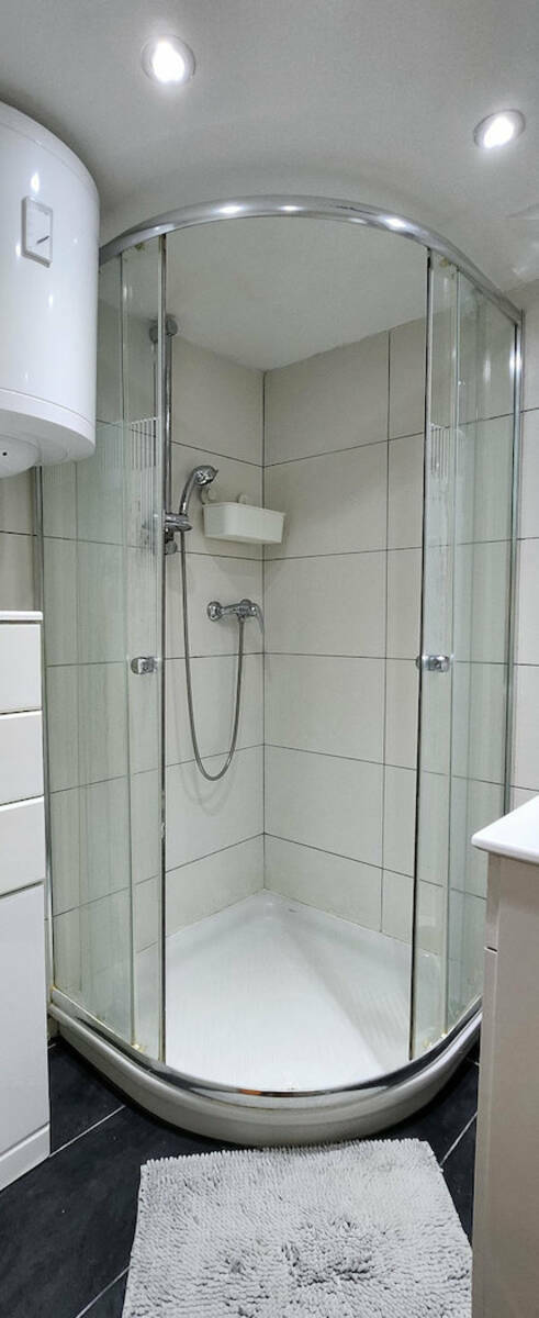 - hodnik, wc, dve shrambi, pralnica, kopalnica, dve manjši sobi (9,2 in 8,7 m2) , ki se lahko združita v eno večjo (predeljeni sta s knauf steno), opremljeno kuhinjo z jedilnico (13,1 m2), ter dnevno sobo (11,9 m2) z izhodom na teraso v velikosti 19 m2.