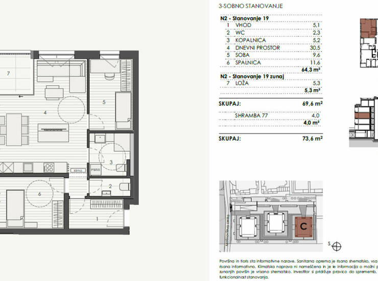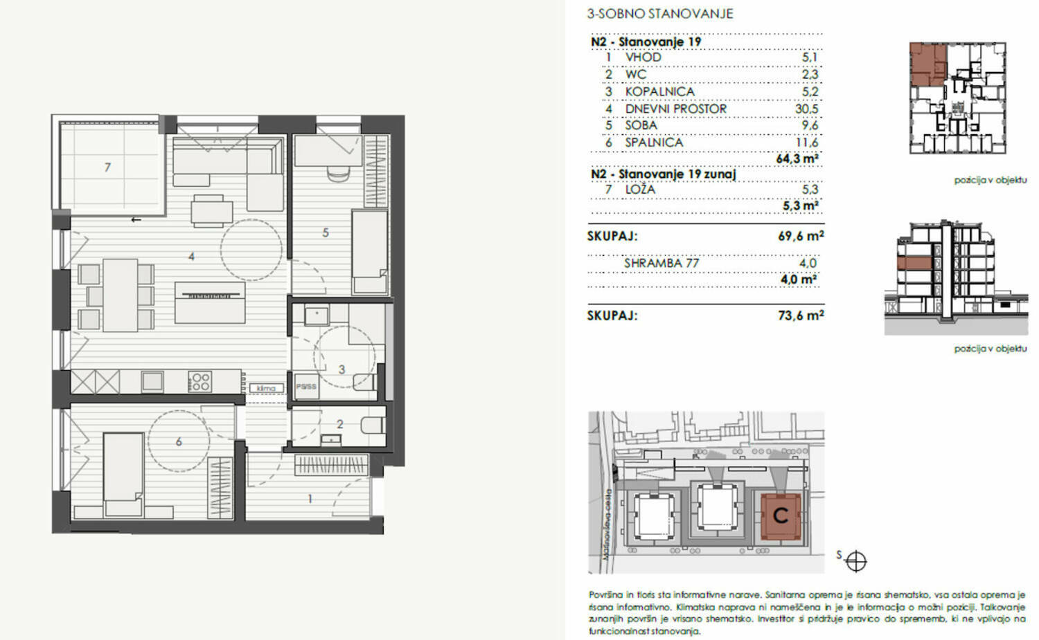 Skupna površina: 73,6 m²