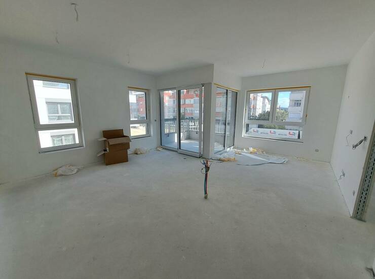 Slike odražajo trenutno stanje. Cena stanovanja vključuje vgrajene finalne materiale, torej bo izdelano na ključ. V bivalnih prostorih bo položen hrastov parket, kopalnica opremljena s sanitarno opremo. Vsi materiali so opredeljeni v prodajnem katalogu.