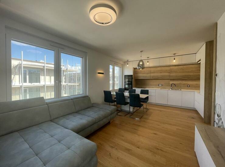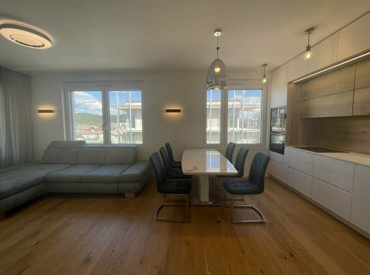 V manjšem bloku s samo 16 stanovanji v naselju Jurčkova 96, zgrajenem l. 2021, prodamo po meri opremljeno protorno trisobno»penthouse« stanovanje v zadnjem 3. nadstropju. Stranovanje je tudi klimatizirano, ima vgrajen rekuperacijski sistem in mu pripada še velika terasa, shramba ter lastniško parkirno mesto v garaži pod objektom (možnost dokupa dodatnega parkirnega mesta za doplačilo). Stanovanje še ni bilo vseljeno in se prodaja kompletno opremljeno vključno z vsemi gospodinskimi aparati. Stanovanje je primerno tako za mlade družine, par, za starejše ali pa kot investicija.