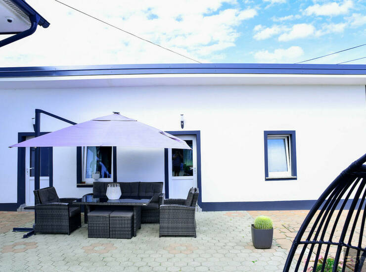 Hiša je primerna za dve družini, ki pa se lahko brez posega združi v enodružinsko hišo.