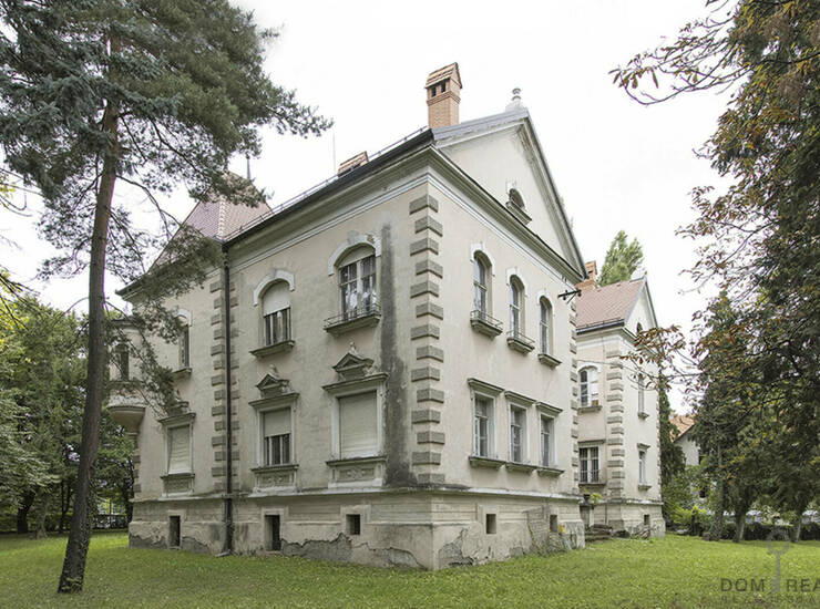 Hiša ima kar 8 spalnic in 8 kopalnic, dodatno shrambo, ločen WC ter številne zunanje in notranje prostore. Vila iz poznega 19. stoletja je delo arhitekta J. R. Klotza in predstavlja lep primer klasicističnega stanovanjskega poslopja obdanega s parkom. Objekt vključuje šest stanovanjskih enot, ki so med seboj povezane s centralnim stopniščem.