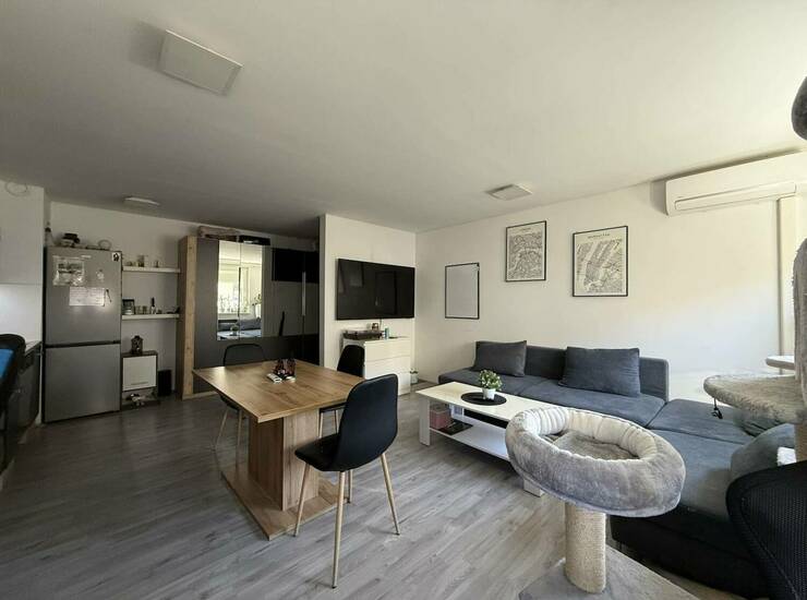 Ogrevanje je urejeno na plin. Stanovanje je klimatizirano. Okna so PVC, letnik 2012. Po tleh sta položena estetski laminat in keramika. Stanovanje se prodaja opremljeno in je vseljivo ob koncu leta 2025.