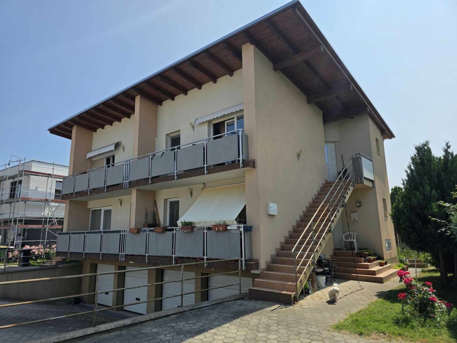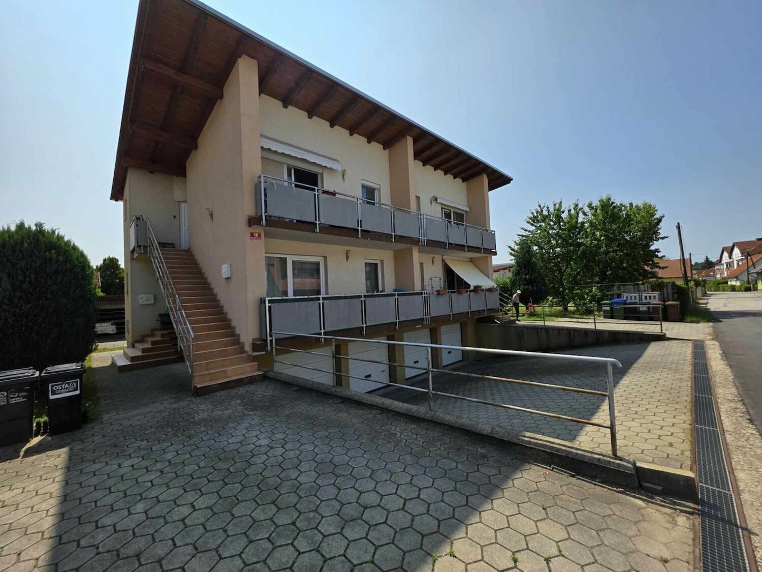 Hiša ima štiri skoraj identična stanovanja, ki se nahajajo v pritličju in prvem nadstropju.Vsakemu stanovanju pripada garaža in shramba v kleti ter skupno dvorišče. Stavba je bila zgrajena leta 2006 in je odlično vzdrževana. Streha je opečnata, fasada je demit,ogrevanje je urejeno na etažne plinske peči. Del dvoriša je tlakovan, del je urejena zelenica, kjer so posajena tudi okrasna drevesa. Z treh strani je zemljišče ograjeno, sprednja stran je urejena za dovoz. Okna so dvoslojna pvc z žaluzijami. Po tleh je položena keramika, v sobah parket. Balkoni so prostorni in zelo veliki. Vsako stanovanje ima svoj vhod z zunanje strani.